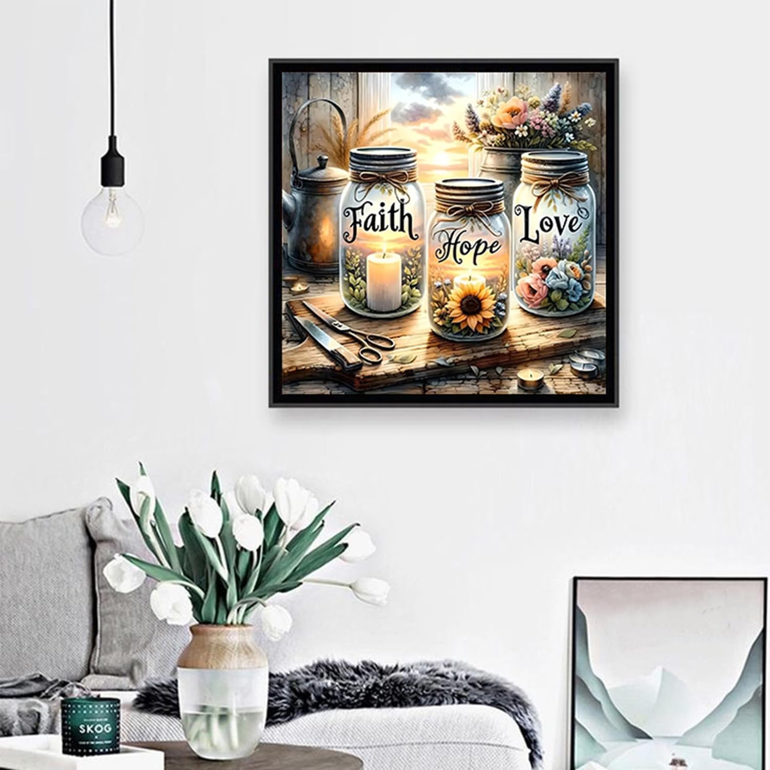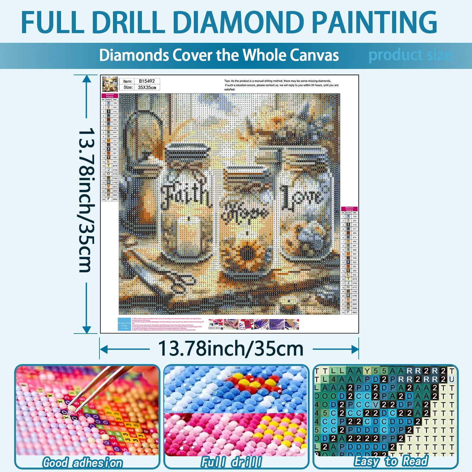 - 【ENRICH YOUR LIFE】Faith hope love diamond painting kits can reduce stress, experience a sense of accomplishment, increase self-confidence, develop endurance and kill leisure time.No need for any handmade skills.DIY diamond painting is simple for beginners. You can easily finish it.The moment you finish this inspirational diamond art kit, you will find that this is not just diamond art, but also a spiritual journey.