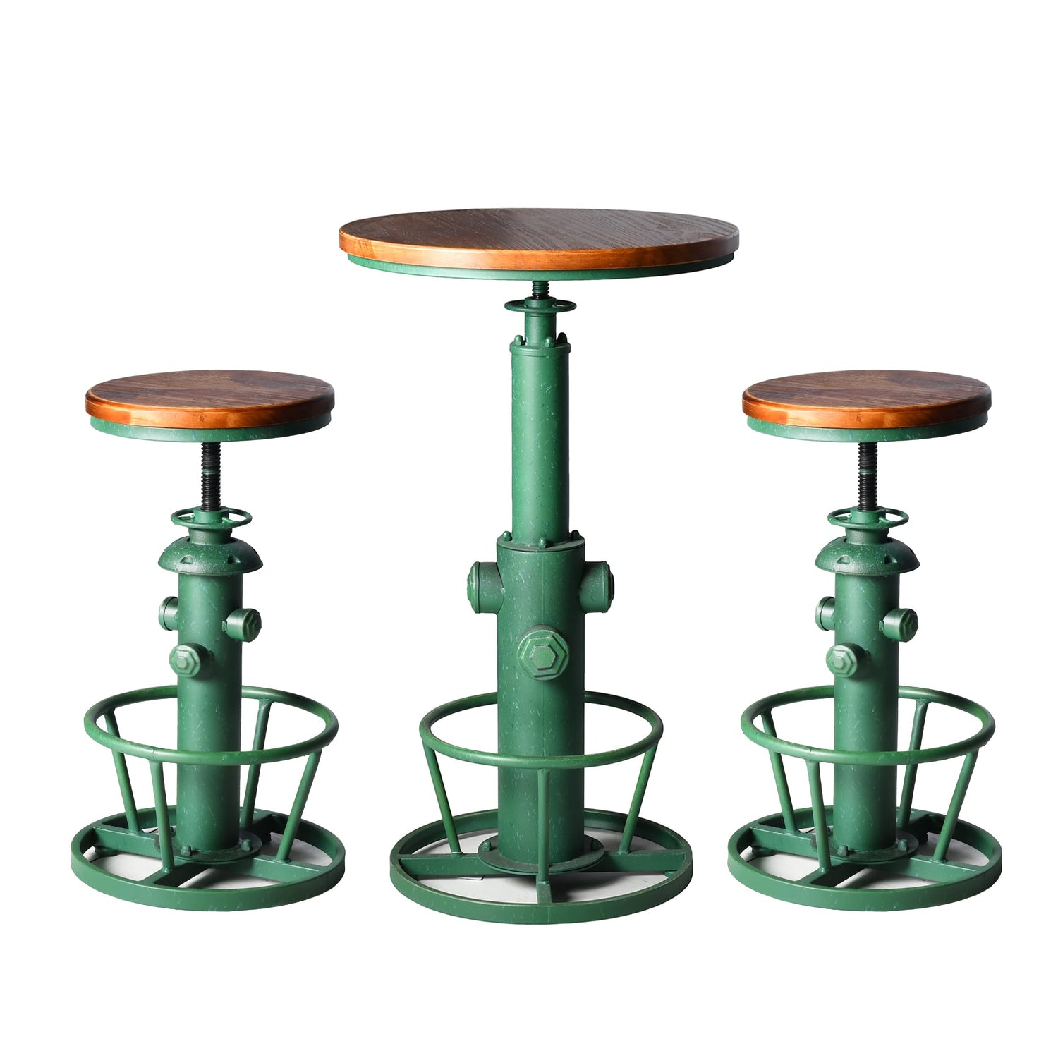 Topower 3 Piece Pub Bar Set Retro Round Bar Table and Stools for 2 Height Adjustable Pub Desk and Stools Match Bar Height and Counter Barstool Antique Green(1 Table + 2 Chairs)