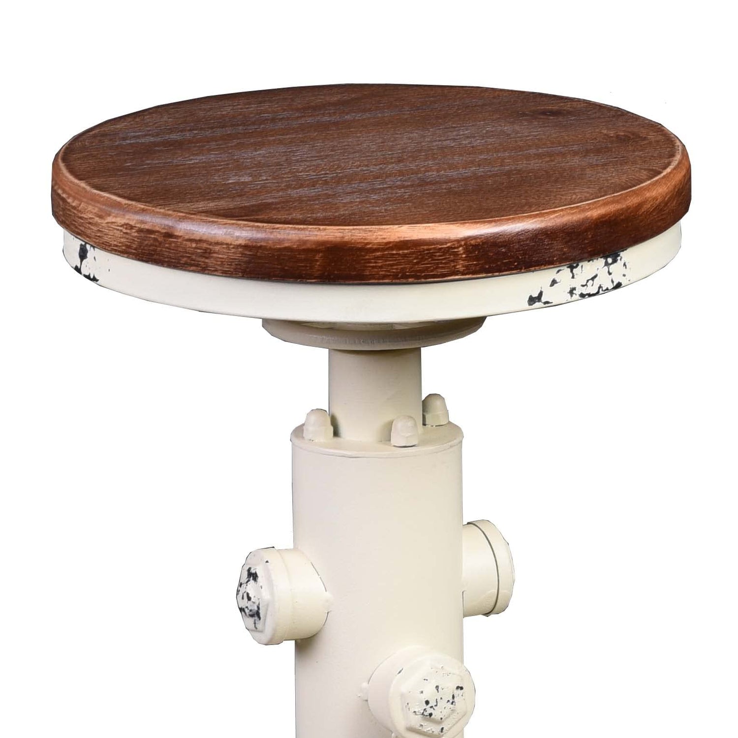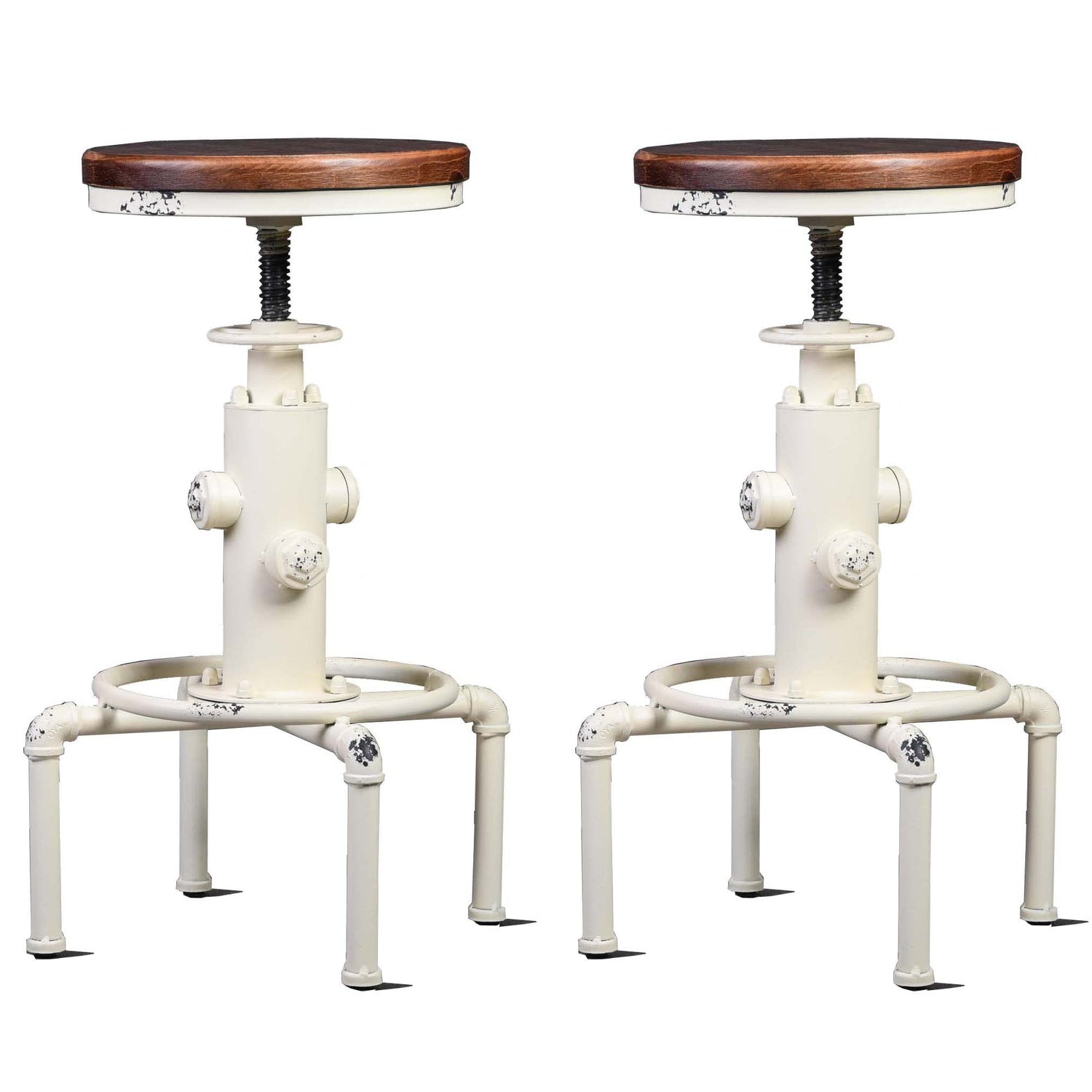 Topower Aged Antique Vintage Industrial Barstool Solid Wood Water Pipe Fire Hydrant Design Cafe Coffee Industrial Bar Stool Set of 2 Antique White
