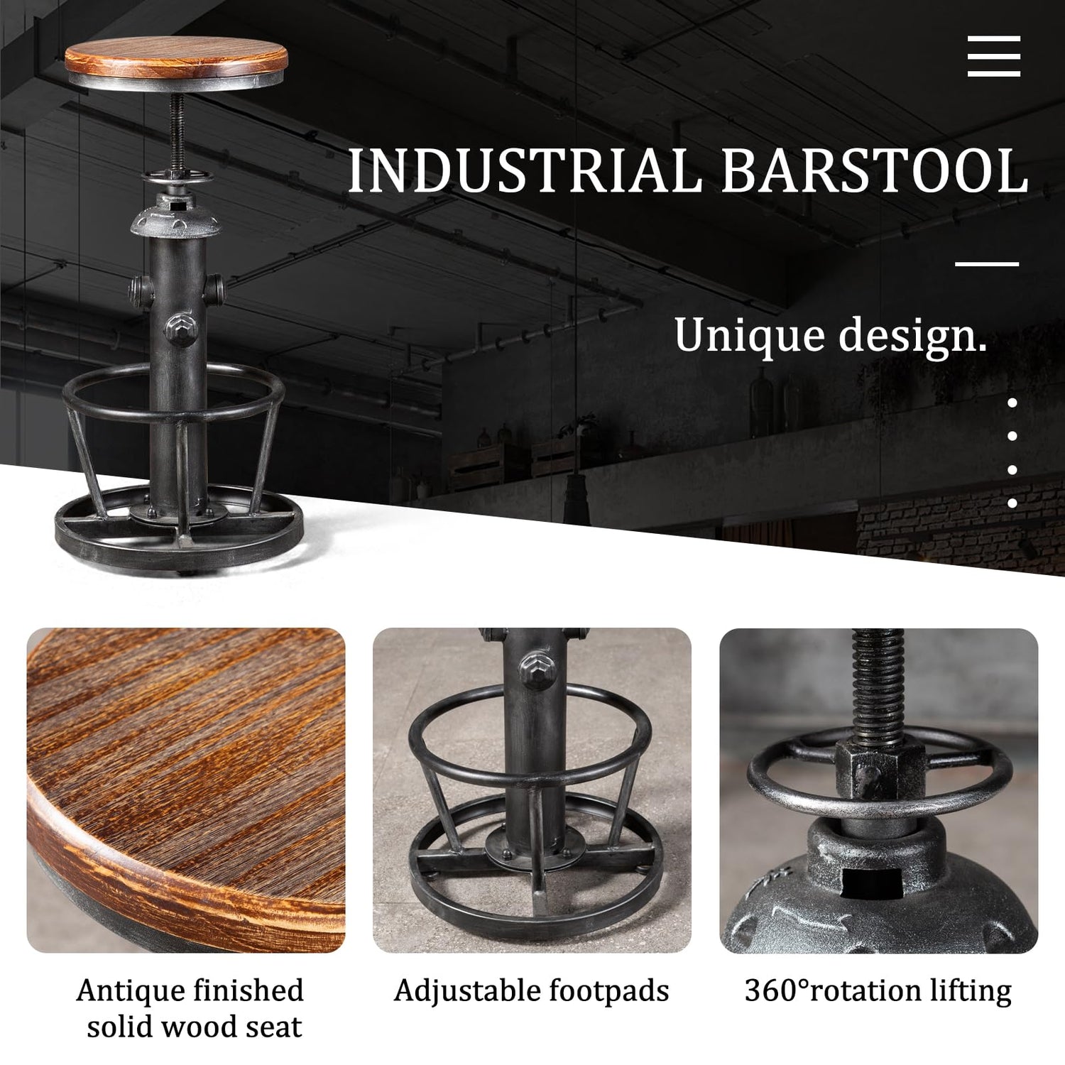 -Vintage industrial look bar stool,is characterized by mix of brown wooden seat and silvery brush make the stool aged look .Easily matches various decoration style home, farmhouse or vintage kitchen;