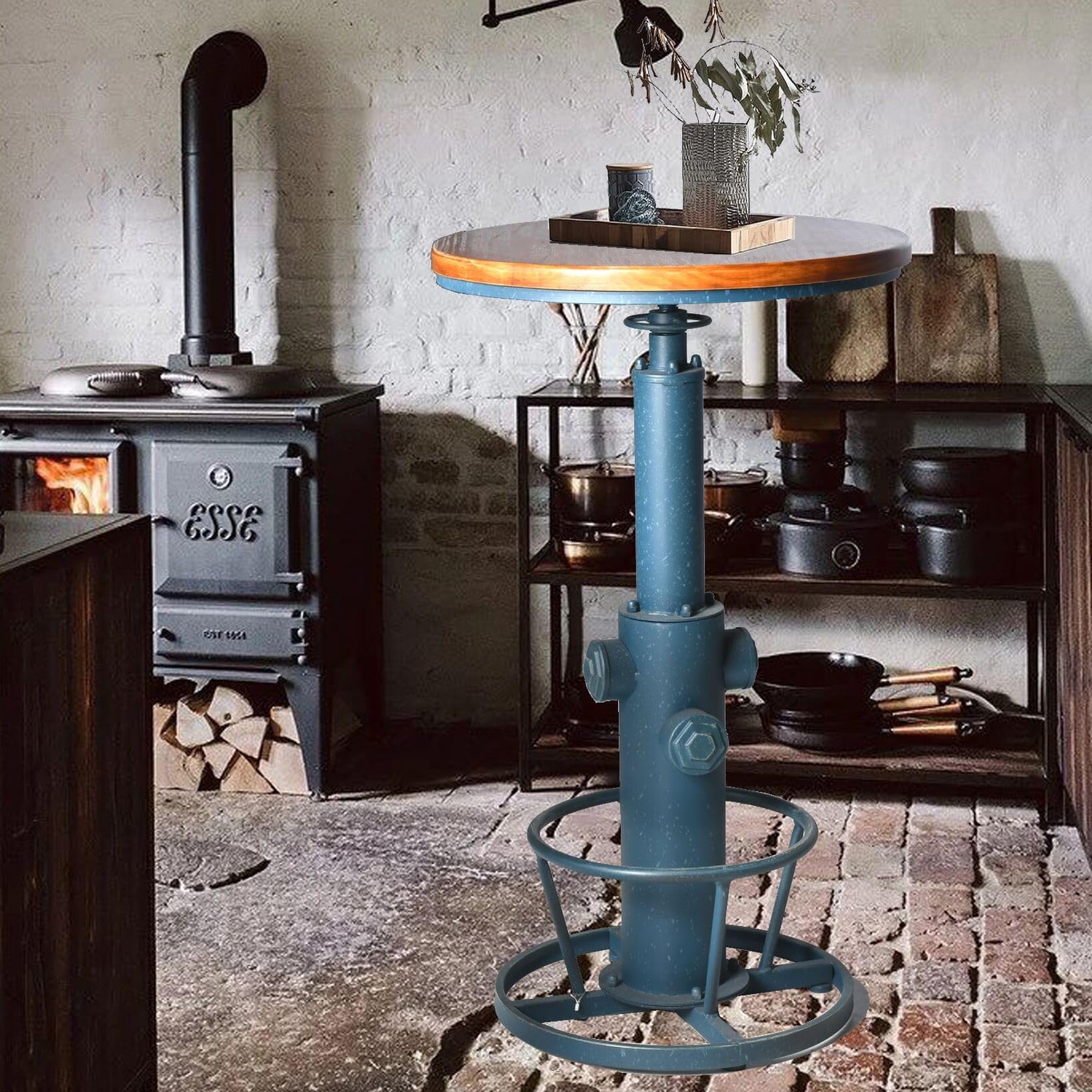 Topower Industrial Bar Table 38.58-48.43" Adjustable Pub Table Kitchen Dining Coffee Bistro Table Antique Blue