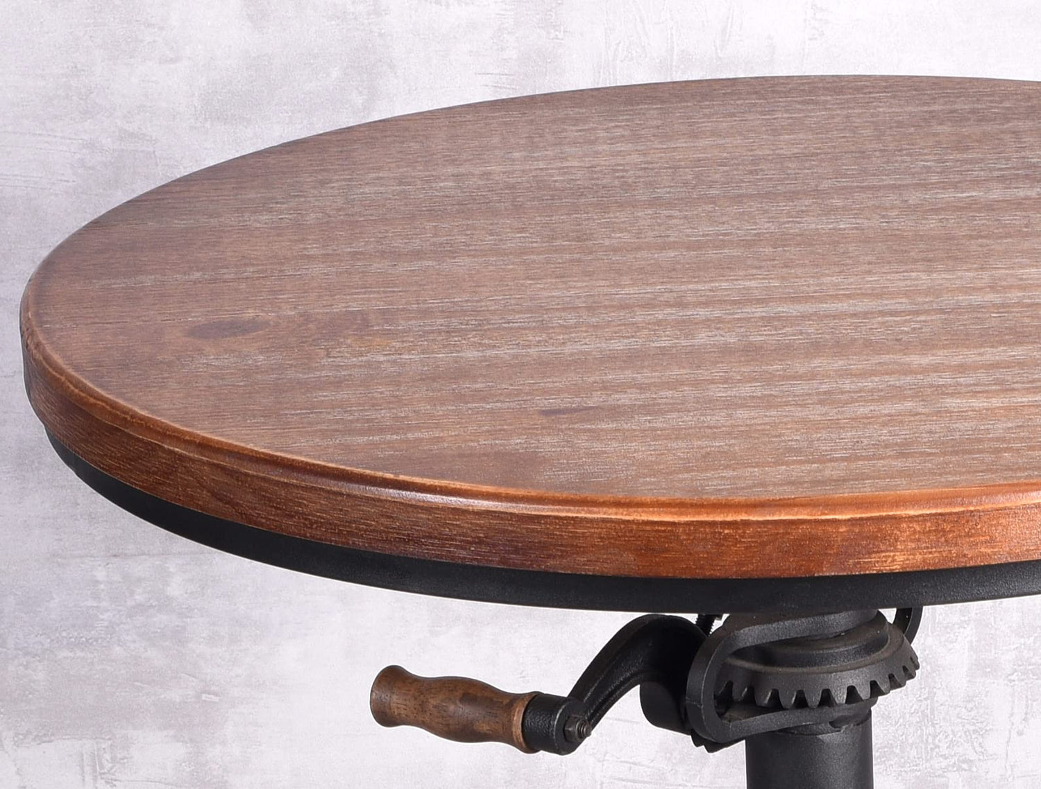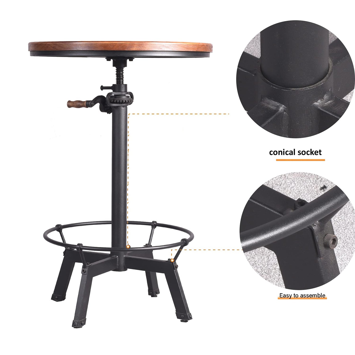 Topower Adjustable Height Industrial Pub Table with Round Wooden Top - Black
