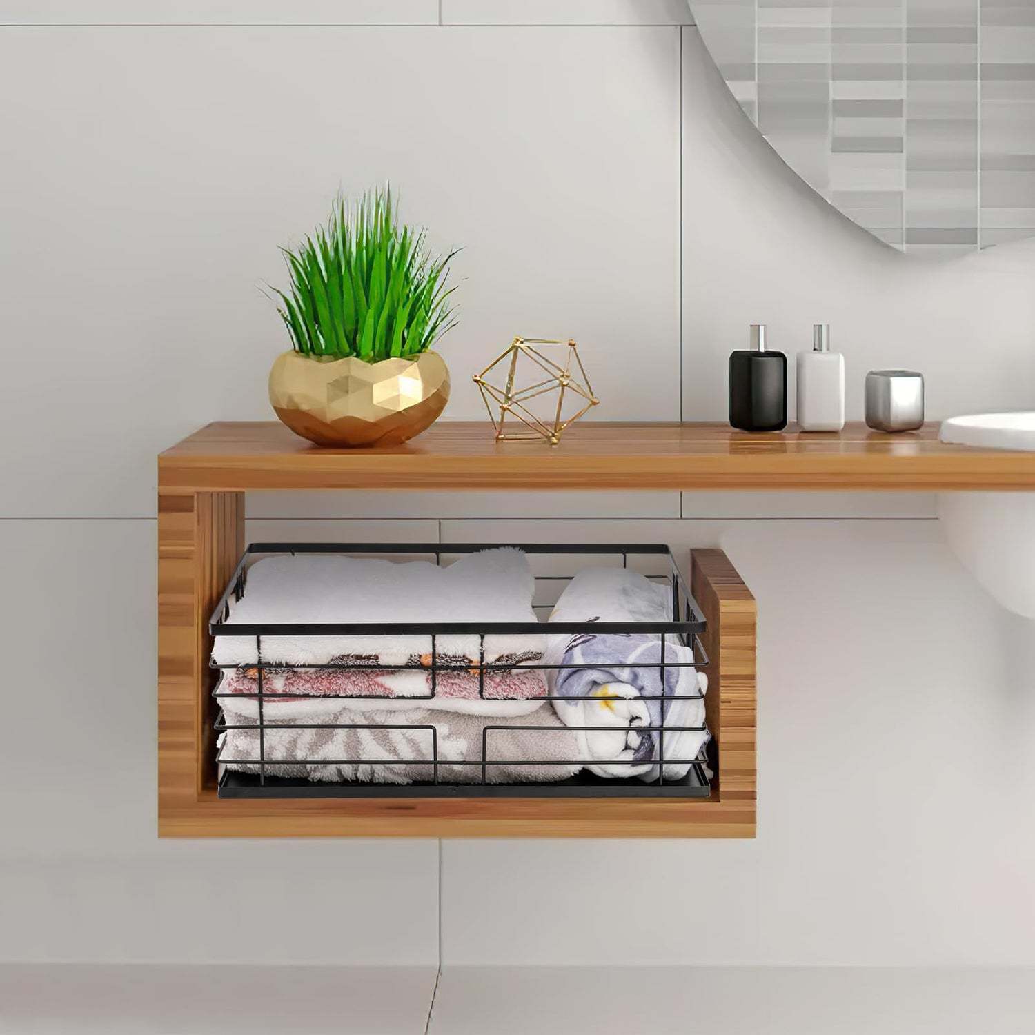 - The size of the rectangle steel basket is about: 16"(L)x 12.5"(W)x 6"(H), have plenty room to hold various size stuffs, like cleaning supplies, towel, toilet paper, utensil, toy, lotion, laundry detergent, office supply, etc. usable for shelf, cabinet, pantry, closet and other storage area, the flat bottom keeps inside items stable during transportation.