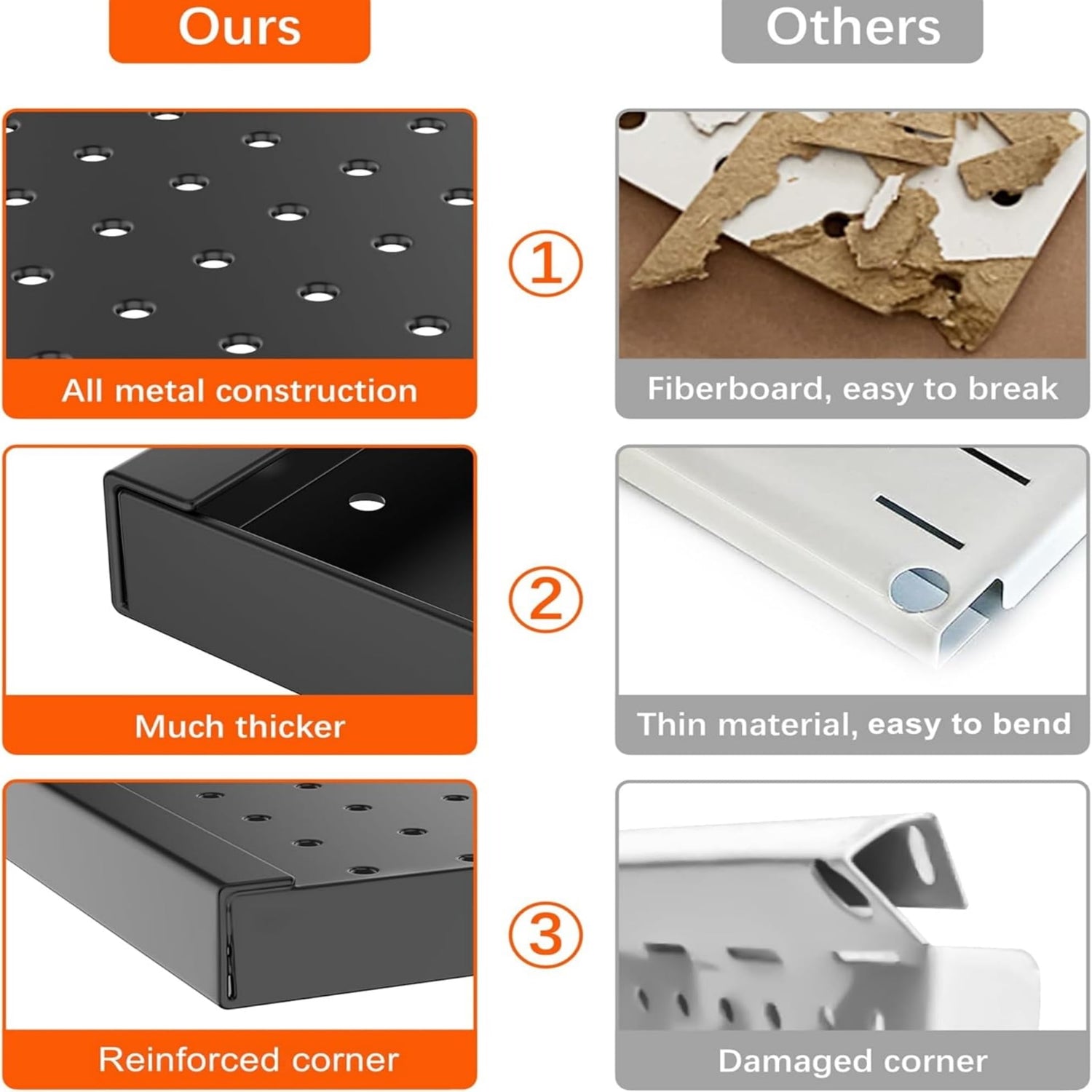 - Built to Last: Pegboard panels are made of high quality steel with powder coated finish, sturdy, scratch resistant and easy to clean. Will last forever, never warp and deteriorate. The metal pegboard will hold the weight of all your tools. You won't be disappointed