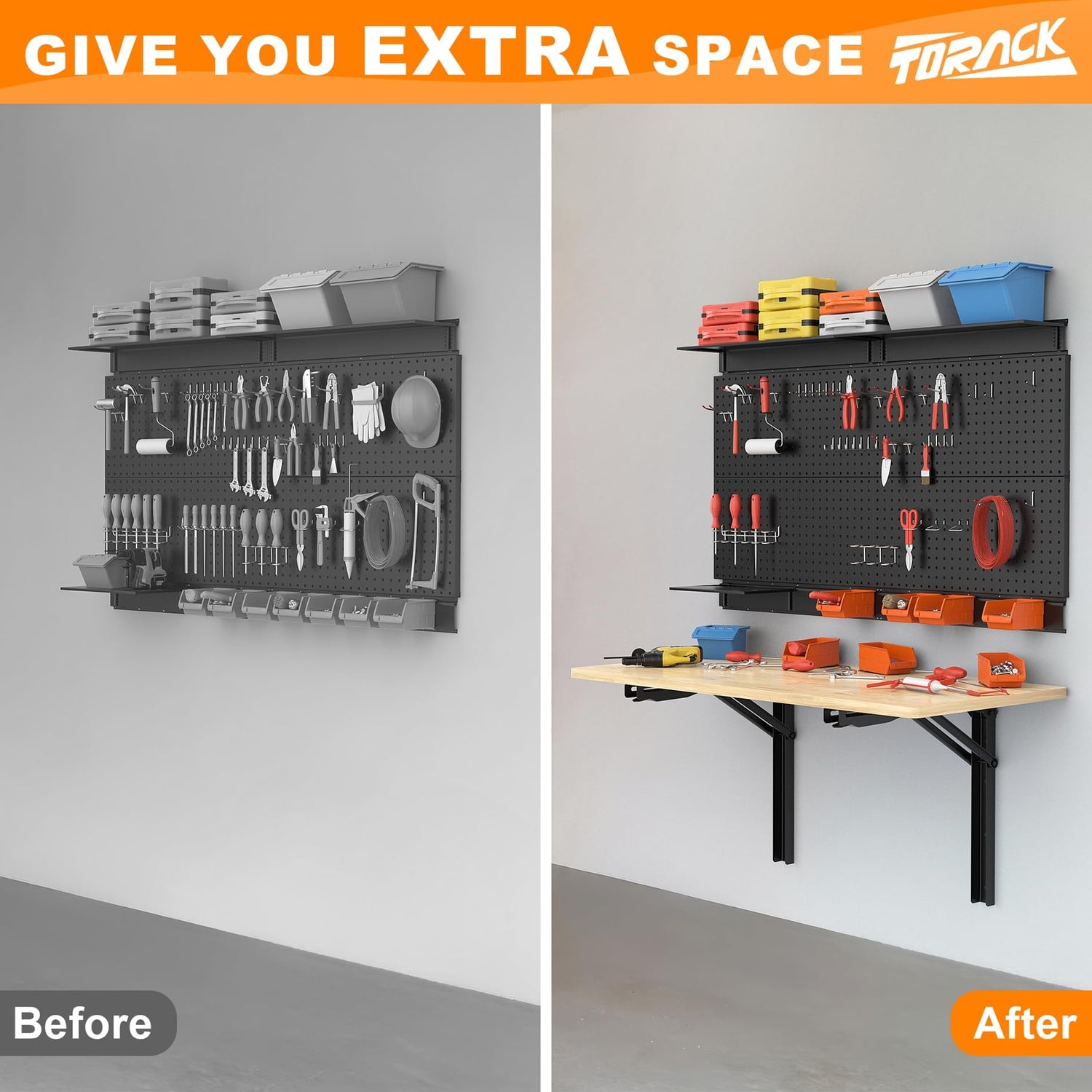 TORACK Heavy Duty Wall Mounted Folding Workbench, Space-Saving Collapsible Wall Table/Desk for Garage Workshop Home, Holds Up to 550lbs(Board Size: 47.25 x 27.75inch)