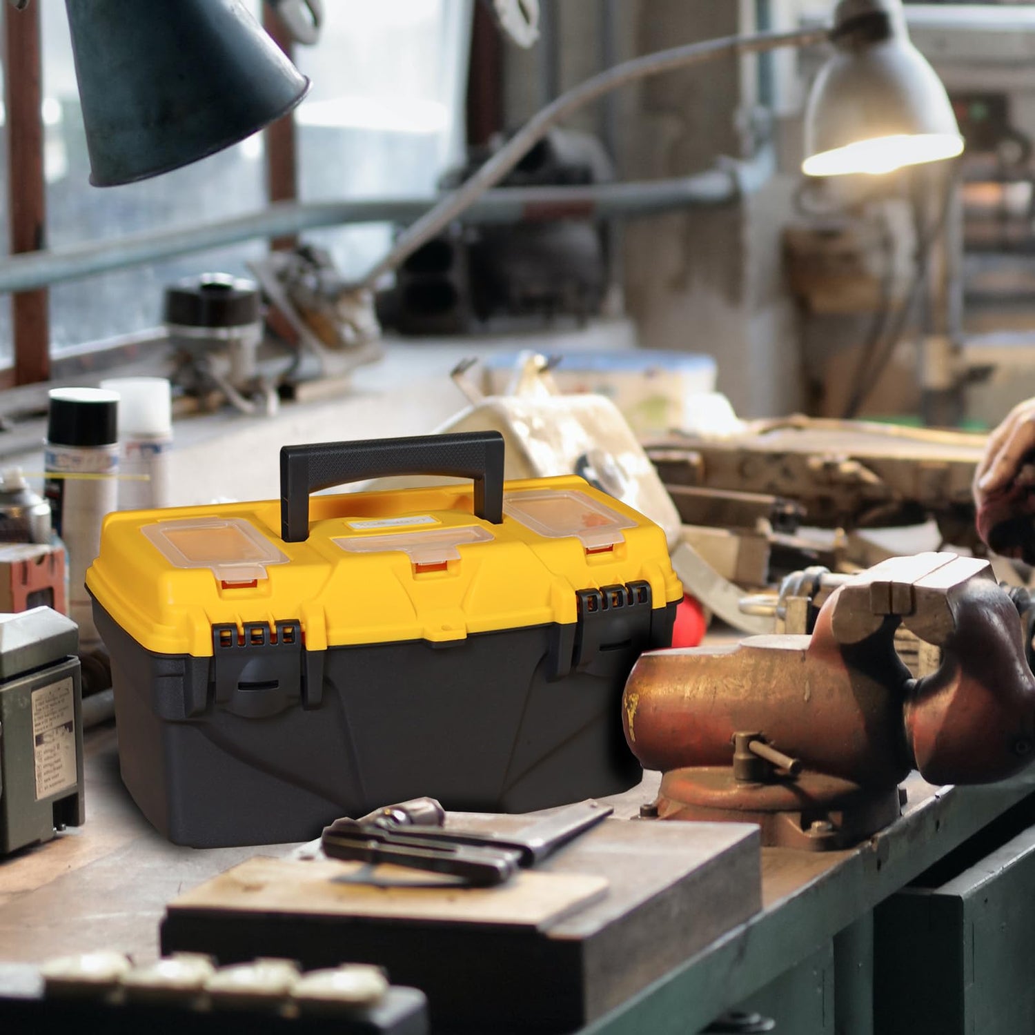 Torin 15.5" Plastic Storage Tool Box with Removable Tray,Small Toolbox Organizer With Screw Box, Black/Yellow ATRJH-3015T