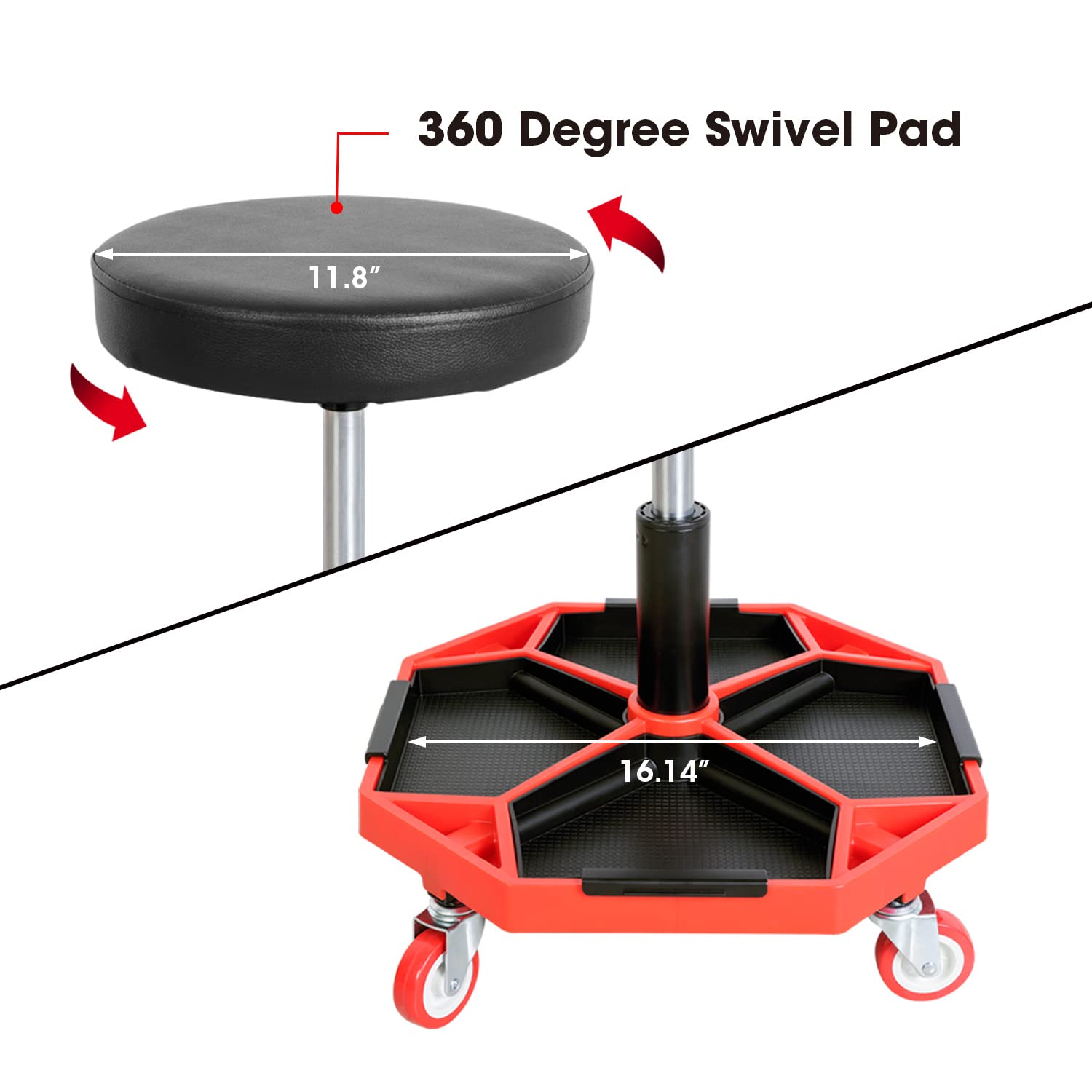 - This mechanic stool is equipped with a soft, fully padded vinyl seat for added cushioning and 2.5" swivel casters for smooth moving making for a good partner when working on your car, truck, SUV, van, and more