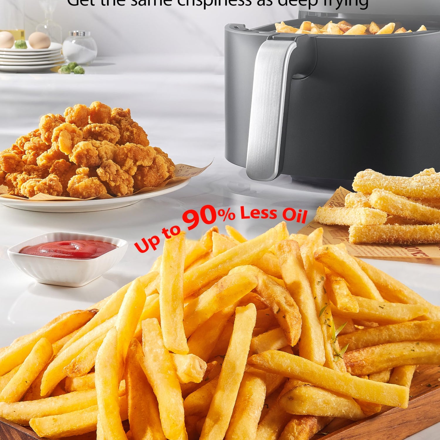 - 8 Preset Menus: Select a preset program and allow the air fryer work its magic, automatically setting itself to the ideal temperature and time for your meal. You can also manually adjust both time and temperature to cater to your preferences.
