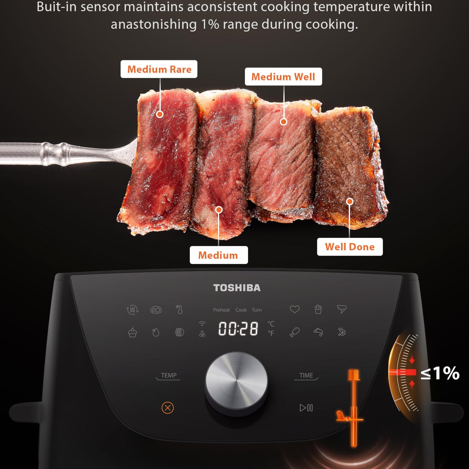 Toshiba 5.5QT Air Fryer with Heat-Q Technology, Quick and Easy Meals, 8 Preset Menus and Menu-IQ Function, 1-Degree Fahrenheit Precision, 90% Less Oil, Double-Sided Handles