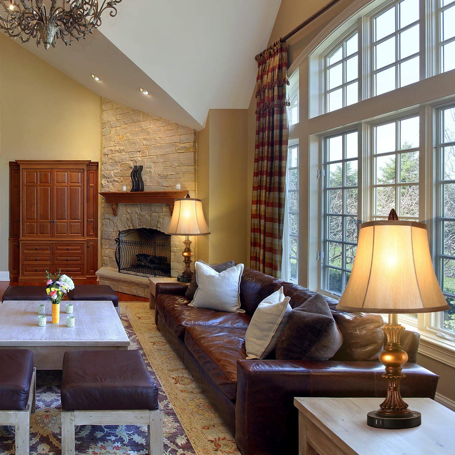 - Traditional table lamp: designed in a vintage style, the bronze finish of the bedside lamp is perfectly paired with the light gold bell shape lampshade to create a timeless look.The traditional design is modernized with a rustic feel, making this the perfect finishing touch to any style of decor. Perfect for the entryway, living room, or office area. Use both lamps in one room, or divide them up for use in several rooms in your home.