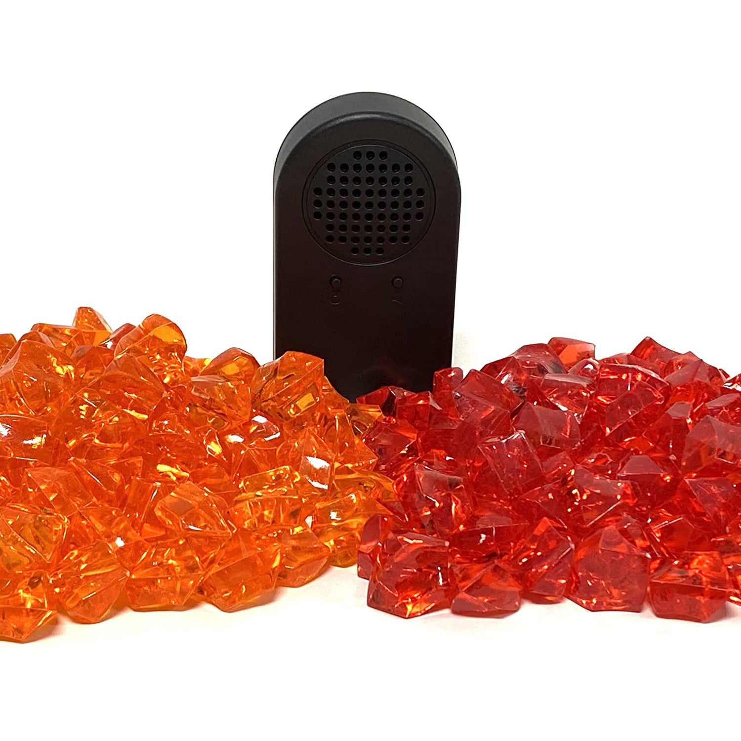 Details: Enhance your electric fireplace experience with this Touchstone Electric Fireplace Accessory Bundle. This Touchstone accessory bundle for electric fireplaces of 60 inches and smaller includes two packs of acrylic crystals for electric fireplaces (one pack of red crystals and one pack of orange crystals), as well as a fire crackle speaker. The fire crackle speaker complements any electric fireplace by providing the sound of a crackling wood fire, adding authenticity to the ambiance created by your electric fireplace. Featuring a magnetized back that can attach to the steel portion of your electric fireplace, the fire crackle speaker has three volume levels that measure approximately 50, 60, and 70 decibels from one foot away, so you can select the sound level that works best for space. It takes three AAA batteries (not included). The red and orange crystals create the appearance of glowing embers at the base of the electric flame effect, adding more vibrant color to your fireplace. Please note that these crystals are intended for use with electric fireplaces. They will not work with other fireplaces, so do not use them with a gas fireplace.