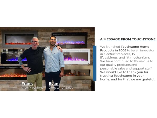 Touchstone Smart Electric Fireplace-The Sideline® 60 Inch Wide-in Wall Recessed-30 Realistic Ember Color/Flame Options-1500W Heater w/Thermostat-Black-Log & Crystal Hearth Options -Alexa/WiFi Enabled
