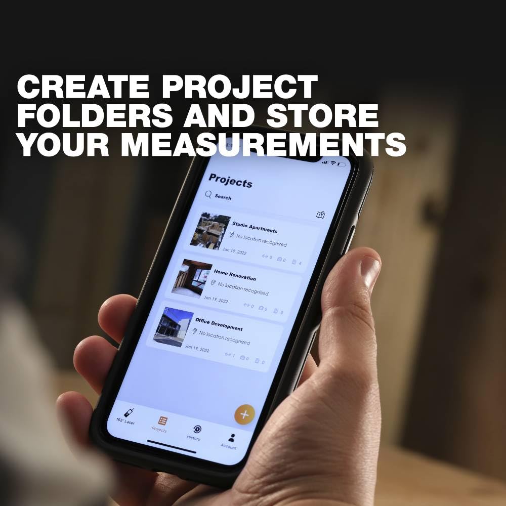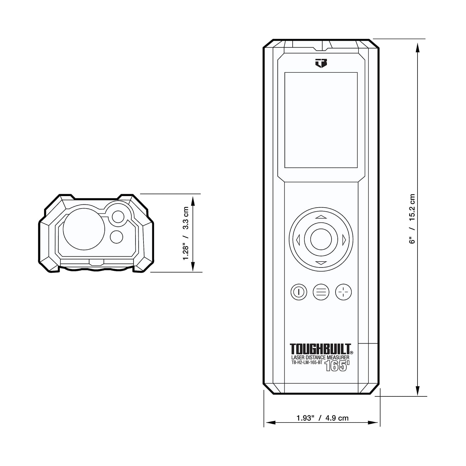 ToughBuilt - 165' Laser Distance Measurer, Bluetooth Laser Distance Measurer, Large Color Screen with viewfinder - (TB-H2-LM-165-BT)