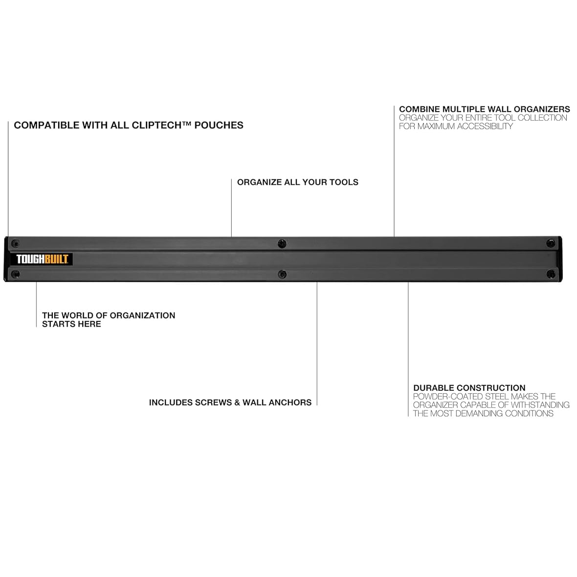 ToughBuilt - 24" Wall Organizer,Compatible with All ClipTech Pouches, Includes Screws & Wall Anchors, Powder-coated Steel - (TB-53)