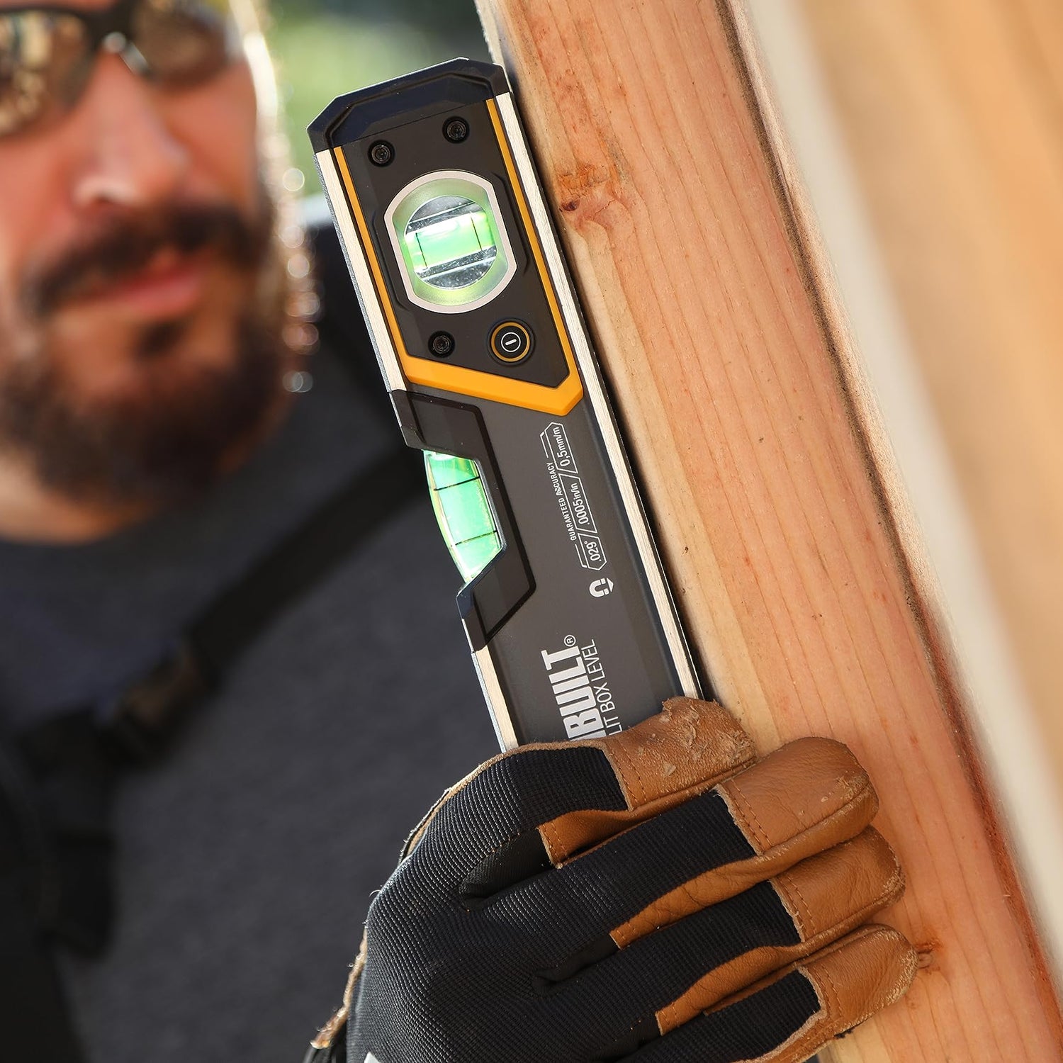 Details: The compact 9″ Lighted Magnetic Box Level is a precision-milled powerhouse designed to meet the rigorous standards that Pros demand. This LED-lighted 9″ box level is equipped for visibility in any jobsite environment. Built for all-day reliable accuracy where it counts.