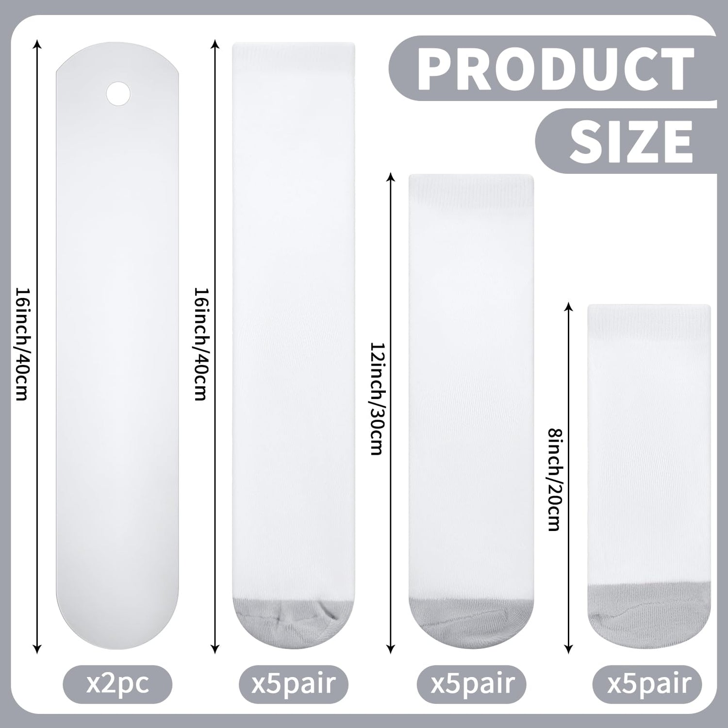 - Sufficient Quantity in Practical Combinations: the package includes 15 pairs of white sublimation socks blanks and 2 pieces of sublimation socks jig inserts, which ensures you get enough quantity and practical tools to create a broad array of personal designs