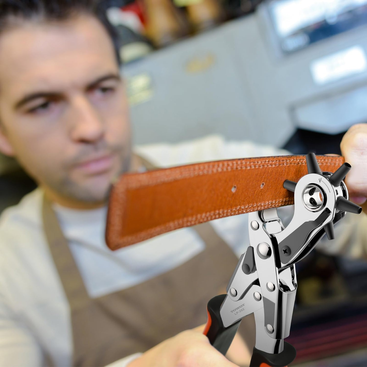 TOWOT Belt Hole Puncher Kit, Upgraded Version Leather Hole Punch for Belt, Saddles, Shoes, Fabric, DIY & Craft Projects, 6 Holes Heavy Duty Rotary Puncher, Easily Punches Perfect Round Holes