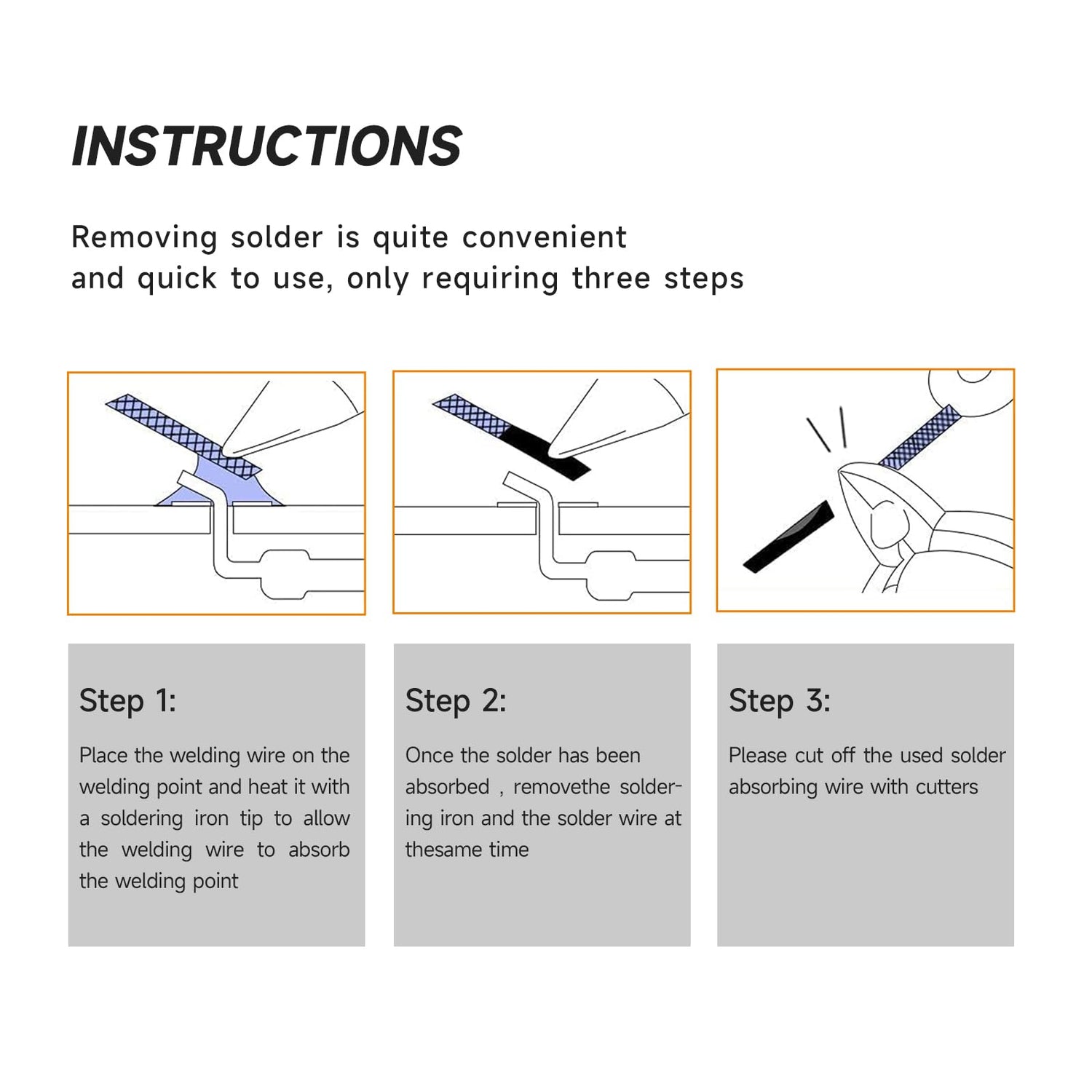 - Low residue design: No-Clean solder wick braid will just leave little residues after use and the residues are non-conductive and non-corrosive, no need to waste your time cleaning it.