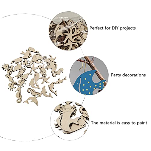 TOYANDONA 50Pcs Unfinished Wooden Cutouts Ocean Animals Wooden Paint Crafts for Kids Home Decor Ornament DIY Craft Art Project Octopus Shark Whale