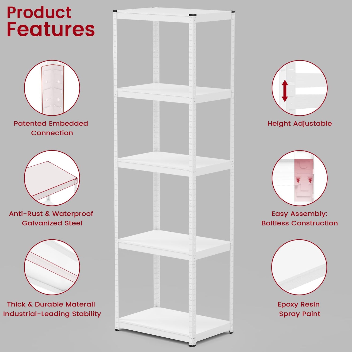 TOYEAR 2000LBS Storage Shelves 5 Tier Garage Shelving Heavy Duty 67.32" H x 23.62" W x 15.75" D Adjustable Metal Shelving Unit for Garage Shelves Utility Rack Shelf (White Shelf, 23.62*15.75*67.32)