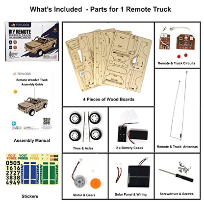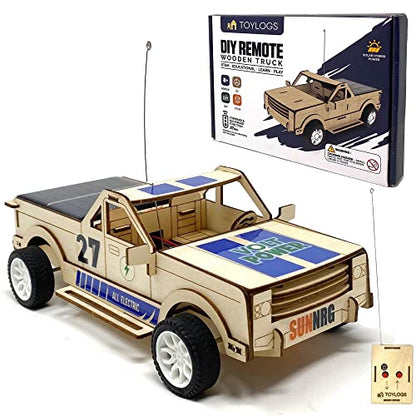 TOYLOGS Wooden Car Model Kit Truck - DIY 3D Puzzle Toy with Remote Control, Solar Power Panel - STEM Projects for Kids Ages 8-12, Educational Science