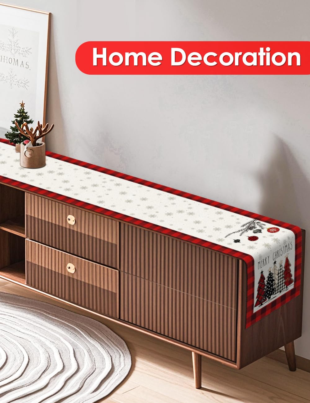 TOYPOPOR Set of 2 Christmas Table Runner, TOYPOPOR 2Pcs Buffalo Linen Christmas Trees Dining Table Runner for Xmas Holiday Seasonal Winter Decoration Indoor Outdoor Party Wedding - 72Inches