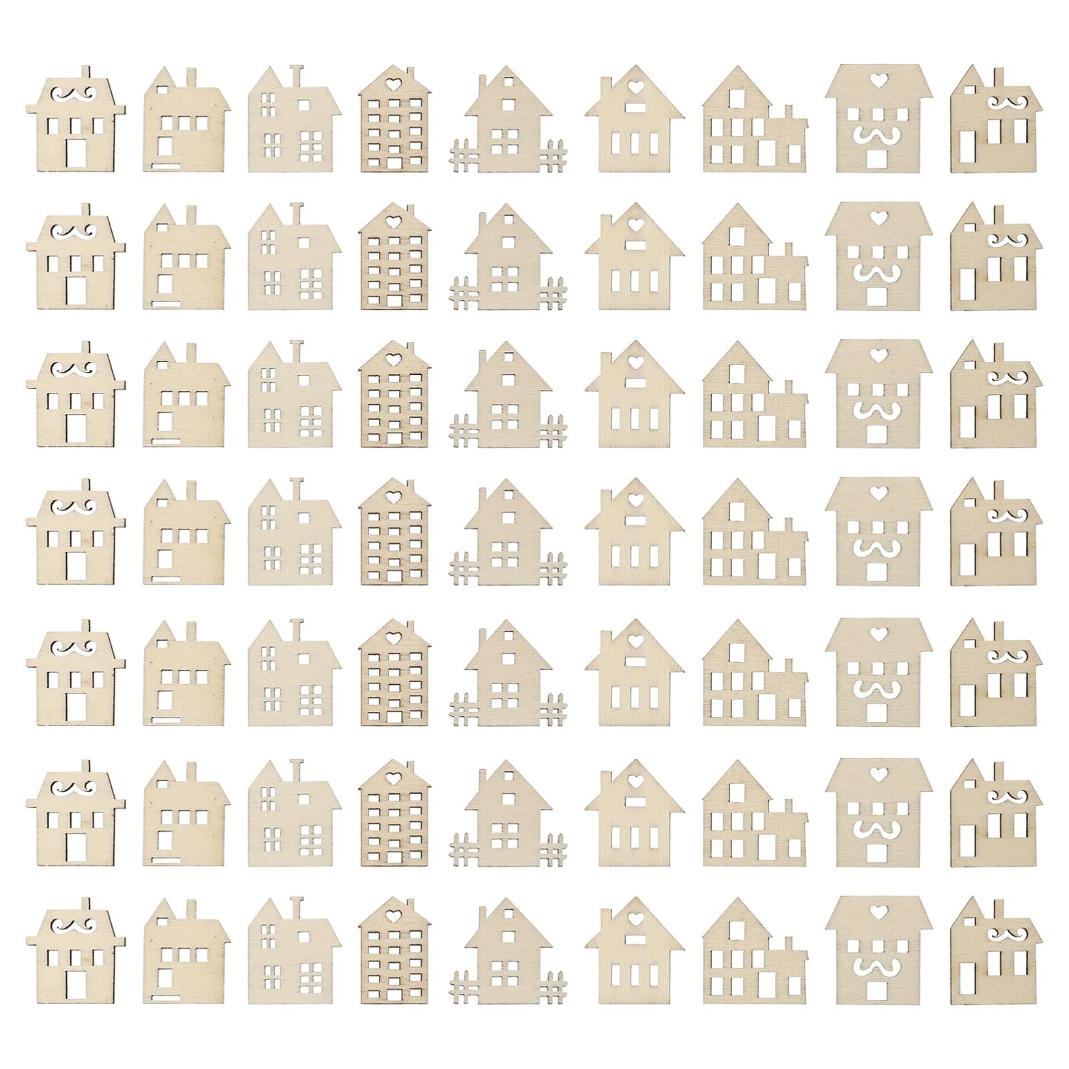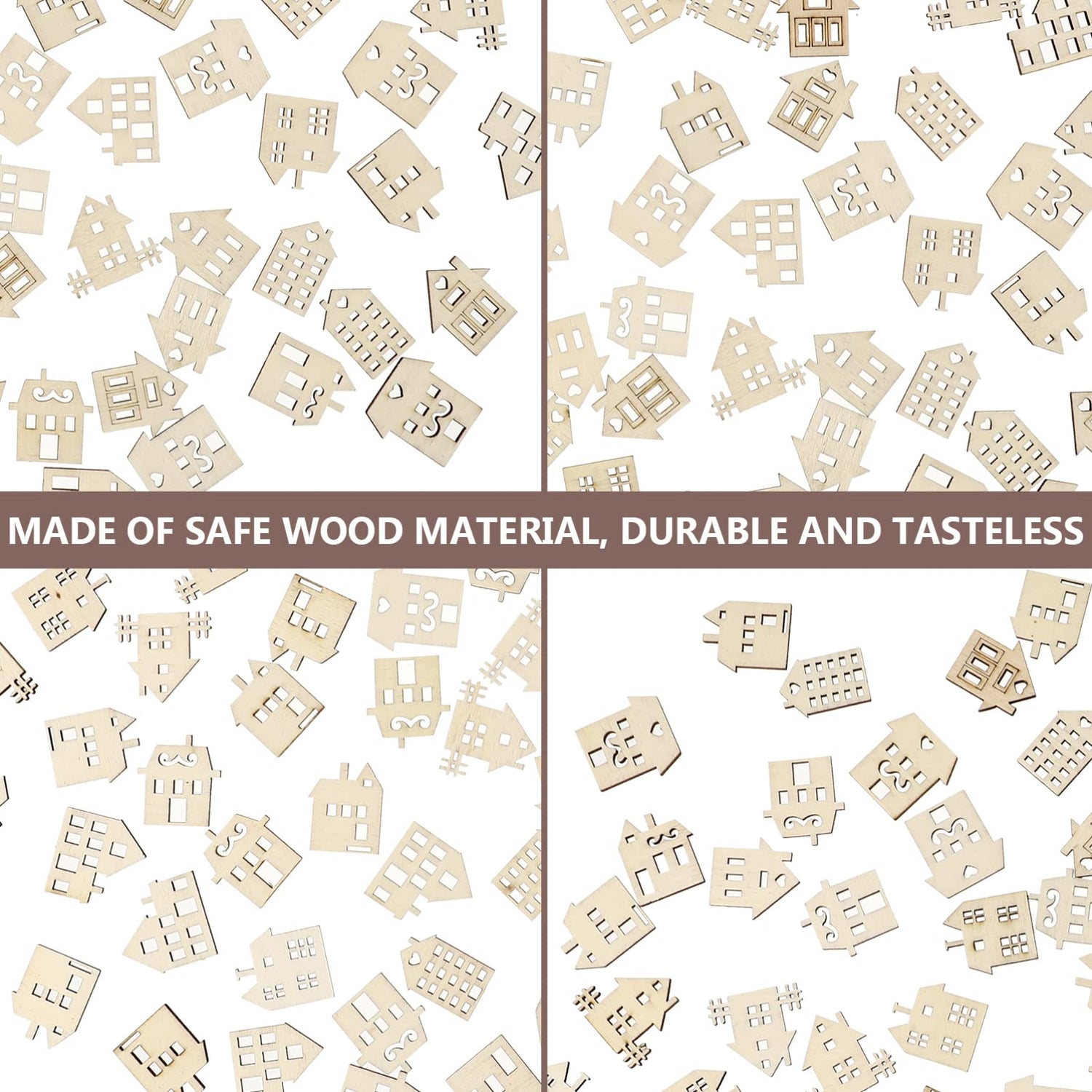 Toyvian 100pcs Wood Craft Shapes House Shaped Unfinished Wood Embellishment Cutout Veneers for DIY Craft Project Home Ornaments