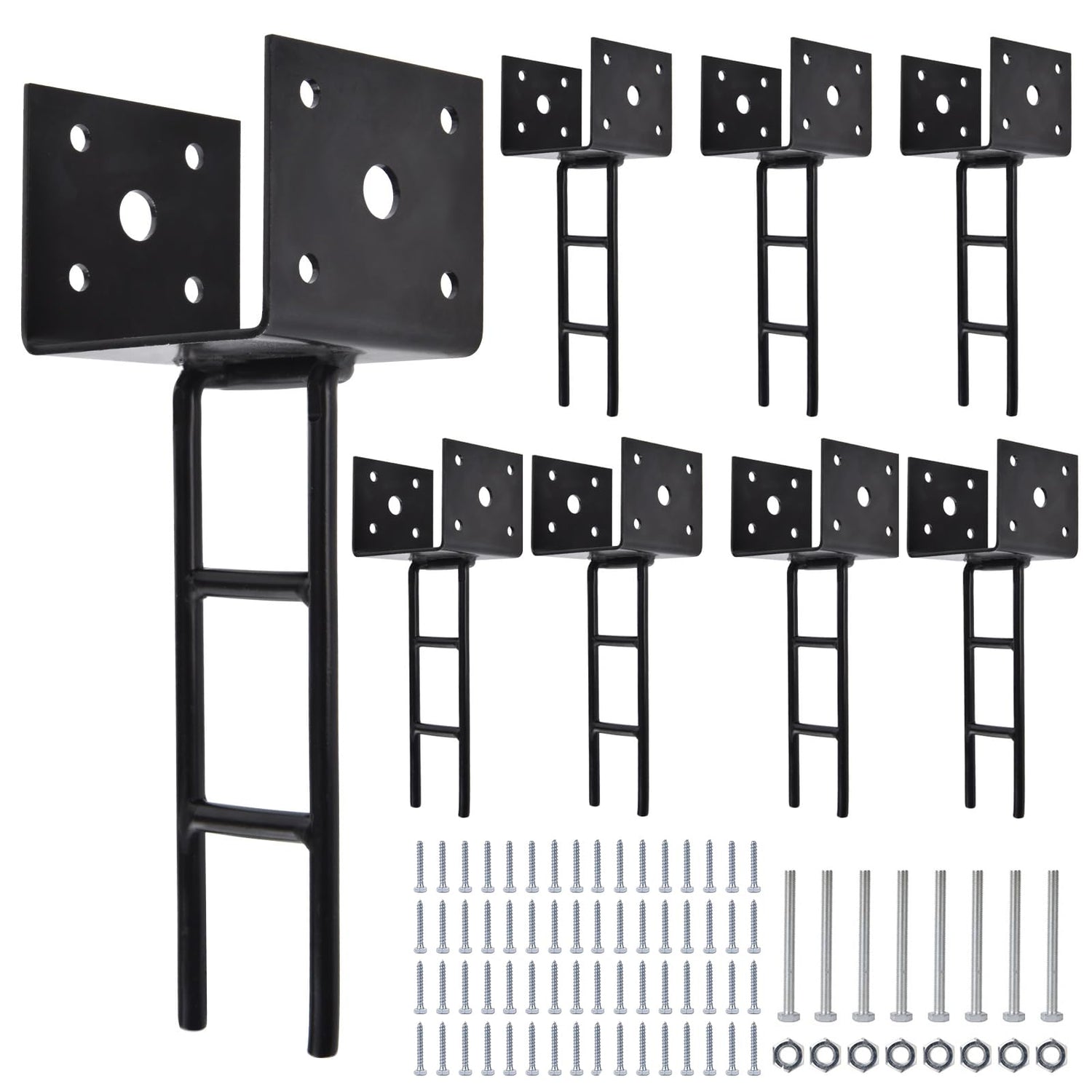 • 【EASY INSTALLATION】 Insert the U-shape post anchor directly into the wet concrete,and dry it for a permanent post mount. Insert wooden posts and install screw nuts through 10 pre-drilled apart