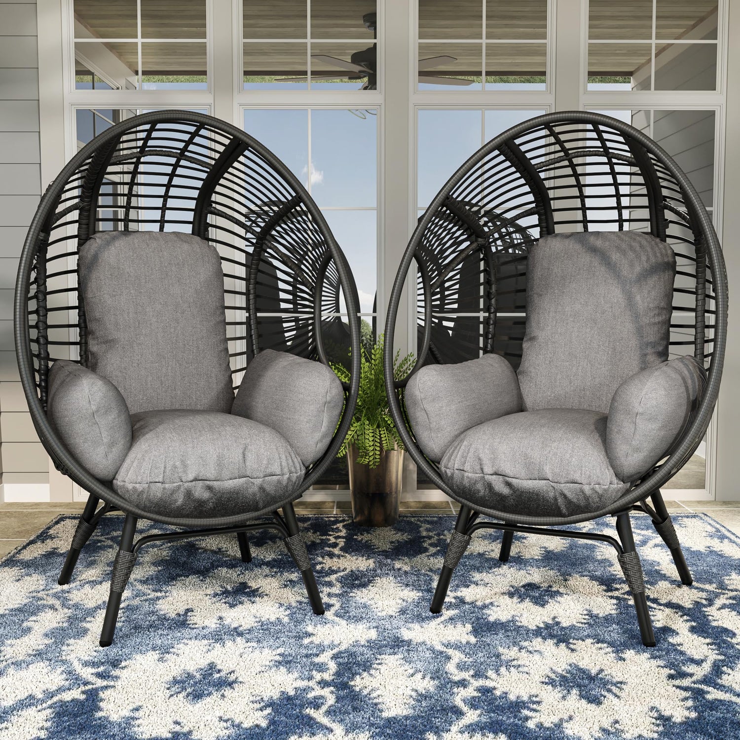 TQKVIPI 2 pcs Oversized Wicker Egg Chair Outdoor Indoor - Rattan Patio Egg Lounge Chairs with Cushion 500lbs Capacity for Living Room, Balcony, Backyard