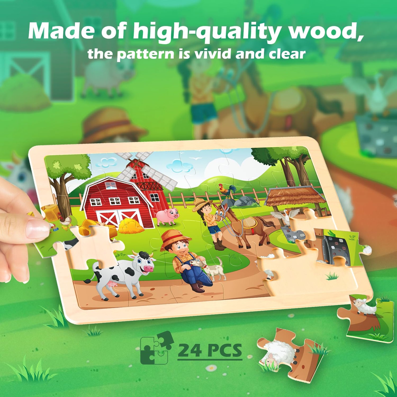 - PERFECT GIFT FOR KIDS - Our kids puzzle set is a great gift choice for birthdays, Christmas, Preschool, Easter, and other holidays. With 24 wooden puzzle pieces, these puzzles are perfect for boys and girls aged 3 to 8.