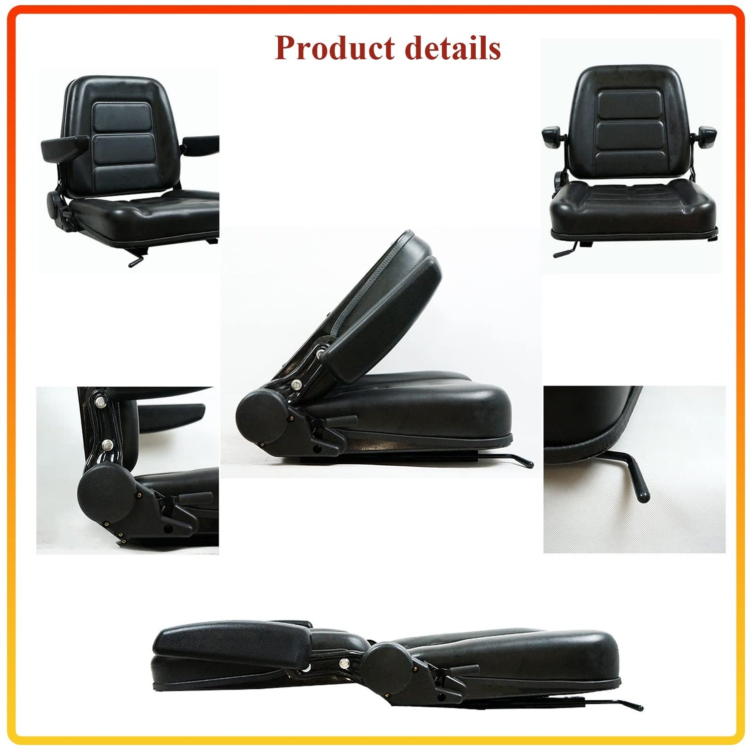 - 【quality material】: The seat of this forklift truck is stylish. The outer fabric of the seat is made of high-quality polyurethane with good physical properties, good resistance to twists and turns, good softness, high tensile strength, air permeability, high temperature resistance and water resistance. This seat has a polyurethane high resilience sponge that is comfortable and durable at the same time.