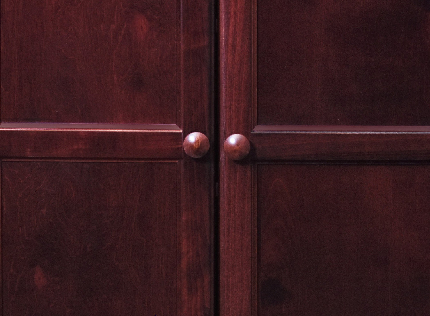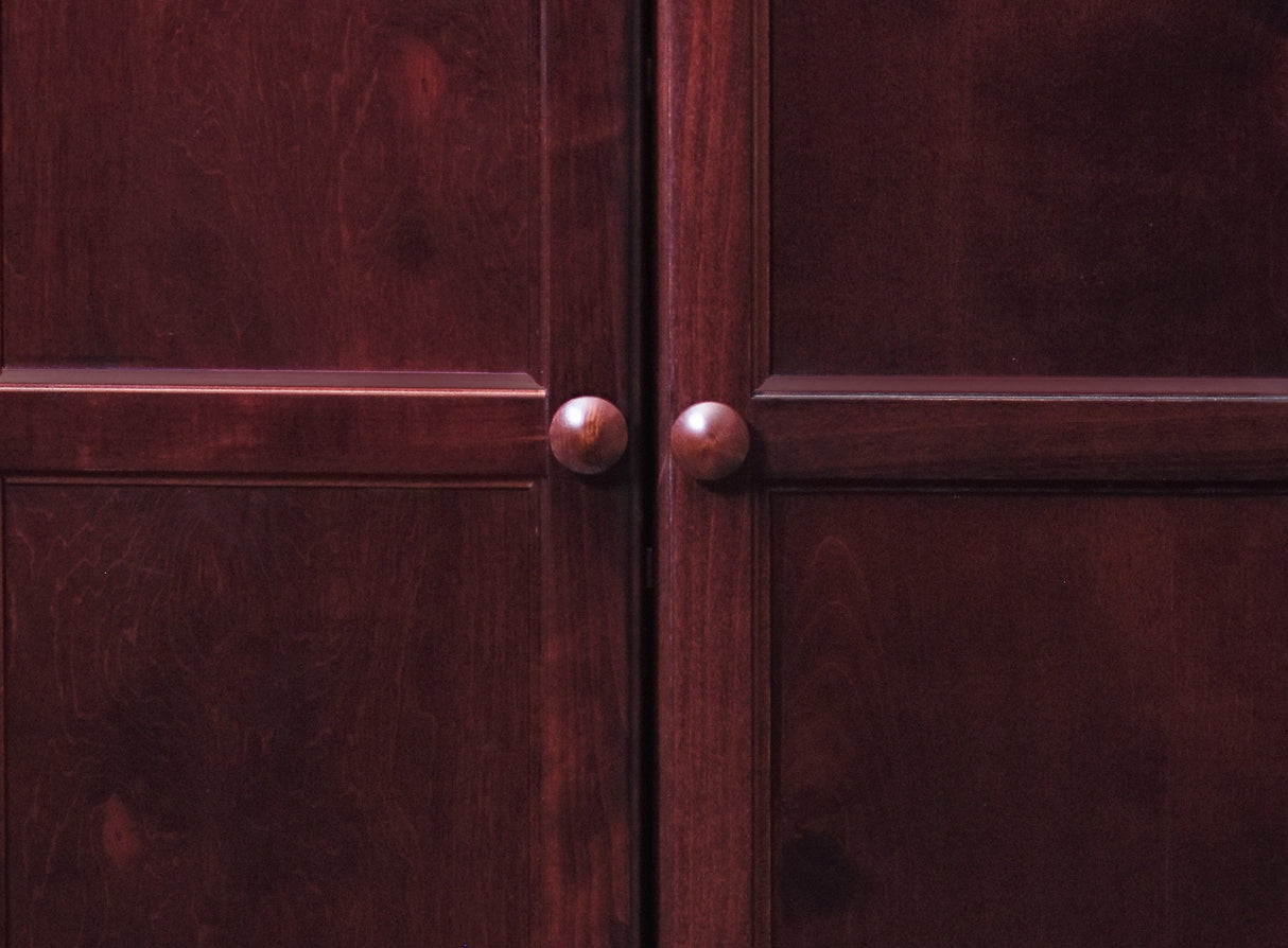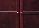 Details: The Concepts in Wood 5 shelf storage cabinet is ideal for use as a pantry in the kitchen, or in the office, laundry, bedroom, garage or any room where additional concealed storage is needed. This is a piece of furniture constructed of wood veneer panels and solid wood accent pieces. To ensure a superior uniform color each door is assembled and hand finished and the entire storage cabinet gets a 10 step zero VOC emission polyurethane Cherry finish that is durable, beautiful, and resists stains for years. 3 adjustable shelves allow you to customize for short or tall items. Two fixed shelves offer extra support and structural reinforcement. Each shelf can hold 70lbs. of evenly distributed weight. Wood is sourced from the USA and assembled in Mexico. Create a wall of storage and add additional storage cabinets next to each other as your storage needs grow. Ready to assemble.