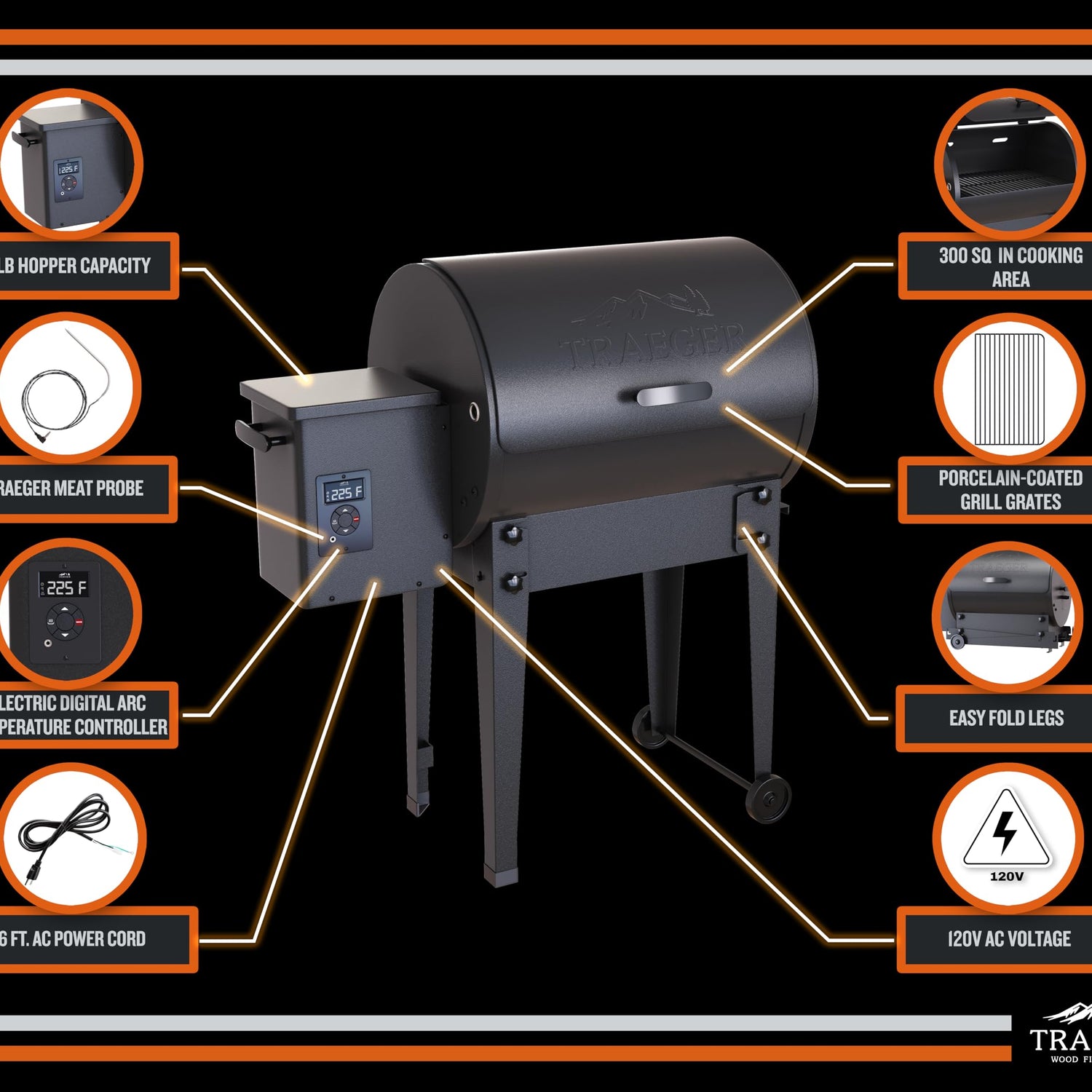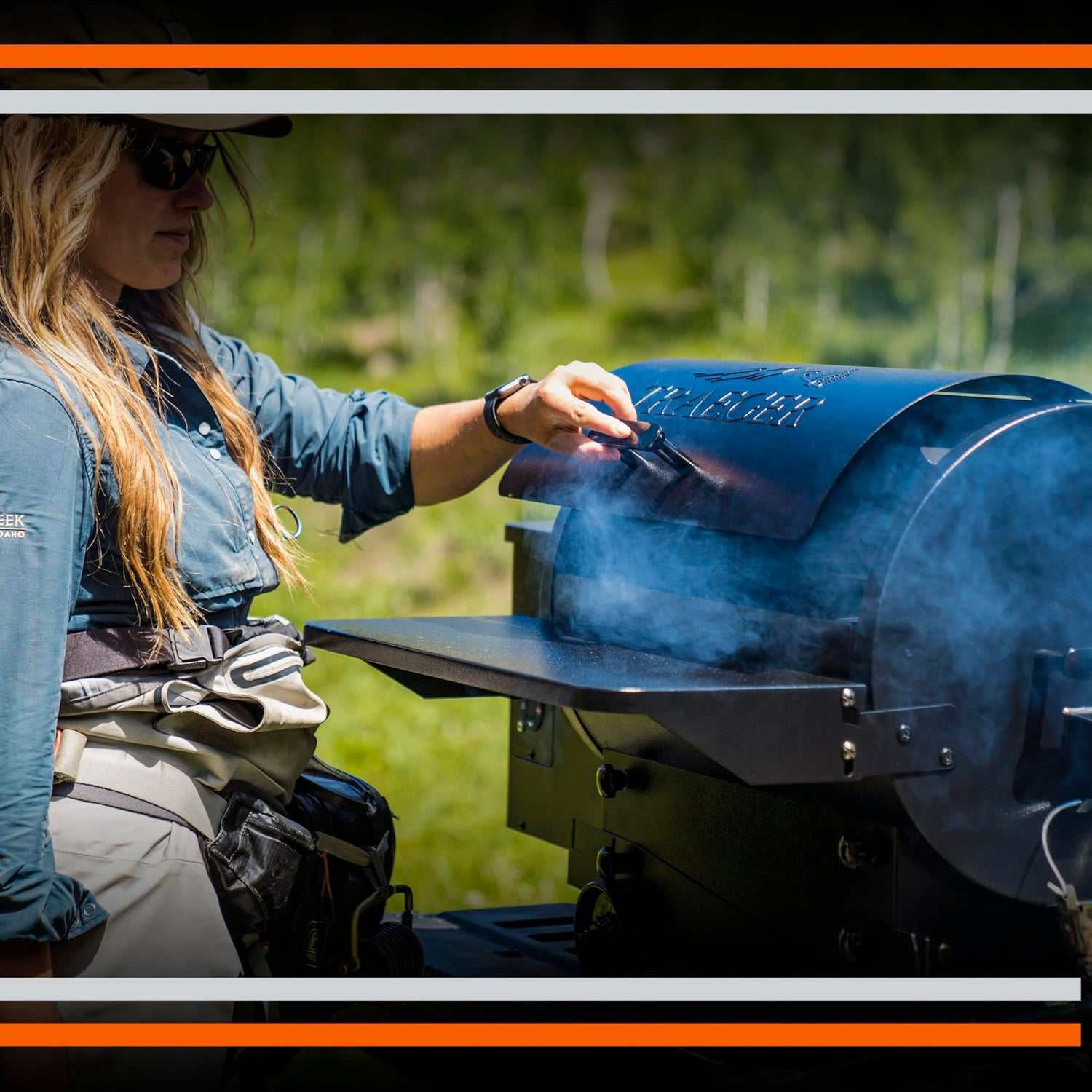• Compact and Efficient with Easy Setup – The Tailgater has an 8 lbs. pellet hopper, porcelain-coated grill grates for easy cleaning, and quick heat-up using a 120V AC power source.