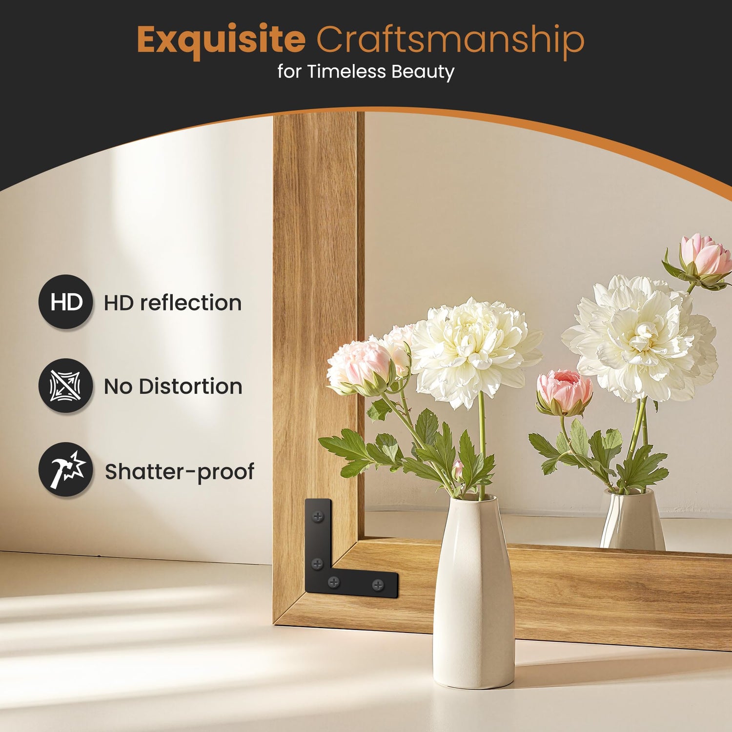 - High-Quality Craftsmanship: Our mirror frame is crafted from premium, solid wood, ensuring its durability and longevity. Built to last, this mirror features a premium 5mm silver-backed glass that ensures HD clarity with no distortion. The explosion-proof and scatter-prevention design provides added safety, making it a reliable choice for any home.