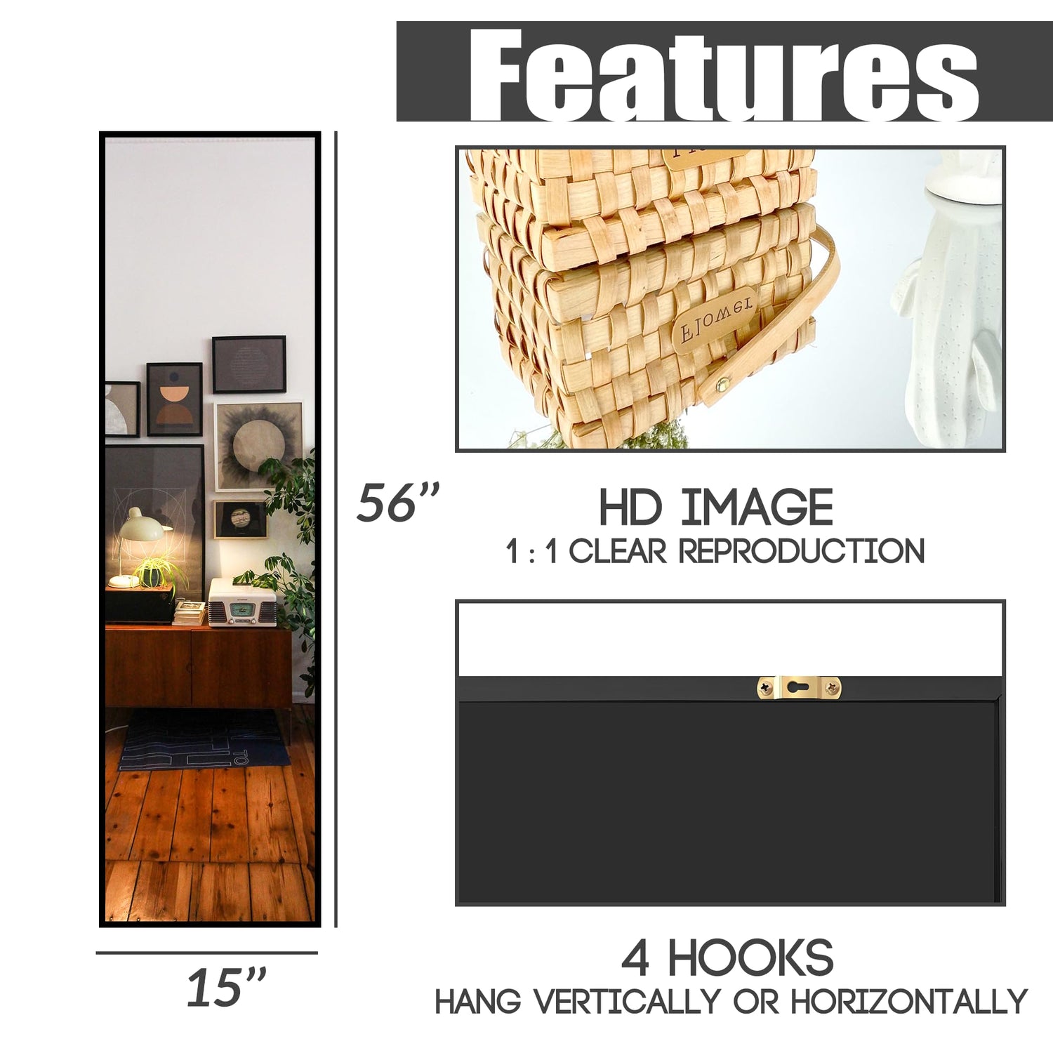 TRAHOME Standing Mirror Full Length Mirror,15" x 56" Large Floor Mirror with Aluminium Frame for Door Bedroom Bathroom Living Room(Black)