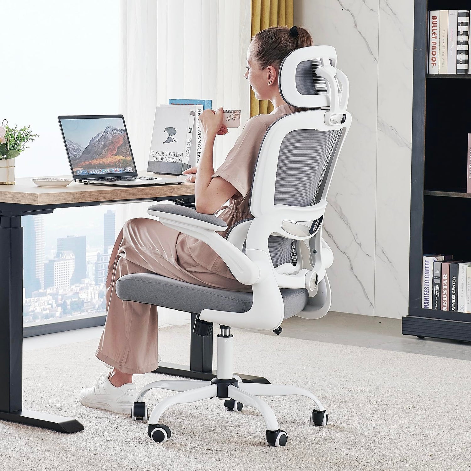- Ergonomic Office Chair: Experience unparalleled support with our ergonomic office chair, designed to provide comprehensive assistance for your head, back, hips, and arms. Tailored lumbar support ensures your comfort and well-being. Suitable for people of about 5'5" to 6'2". Easily adjust seat height, headrest, backrest, and flip-up arms to cater to diverse needs, offering comfortable support during extended periods of sitting