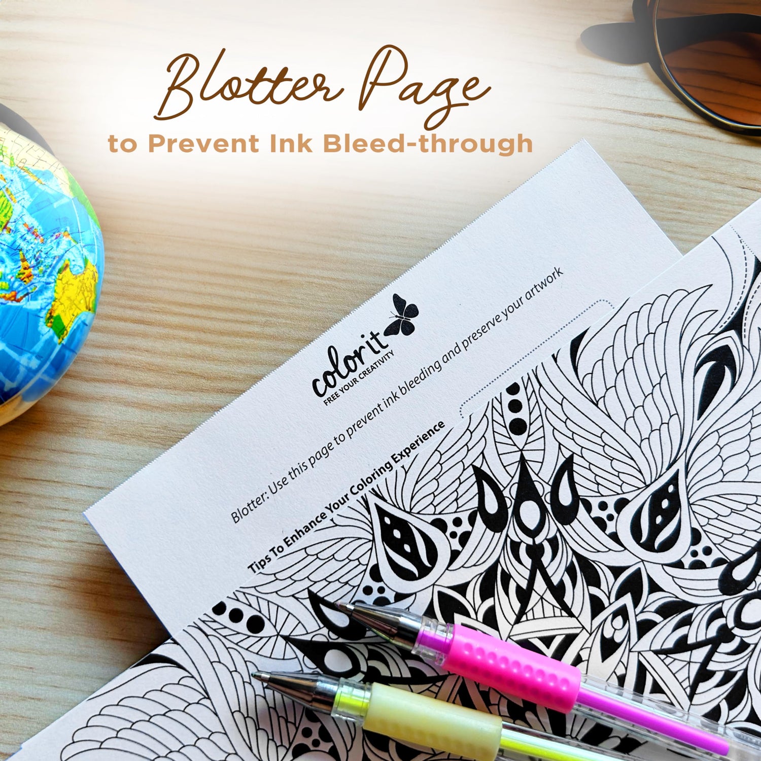 BONUS BLOTTER - Although our artist quality paper withstands most bleeding, we throw in a free bonus blotter for extra protection. Just place it under a page you are coloring to prevent markers or gel pens from seeping through
