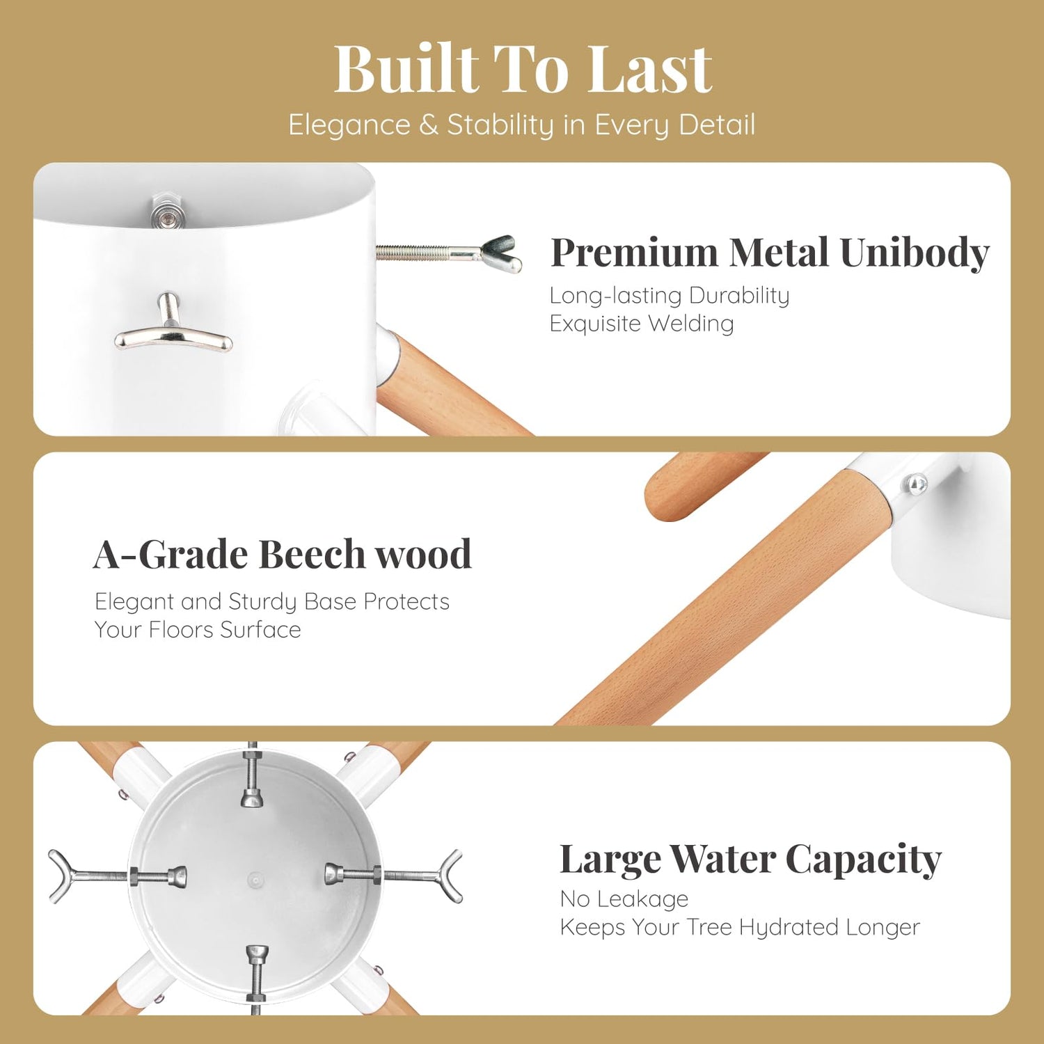 - 【Modern Design】The combination of metal and quality wood makes the live Christmas tree look more suitable for your modern lifestyle, no tree collar or traditional tree skirt needed with this contemporary Christmas tree stand