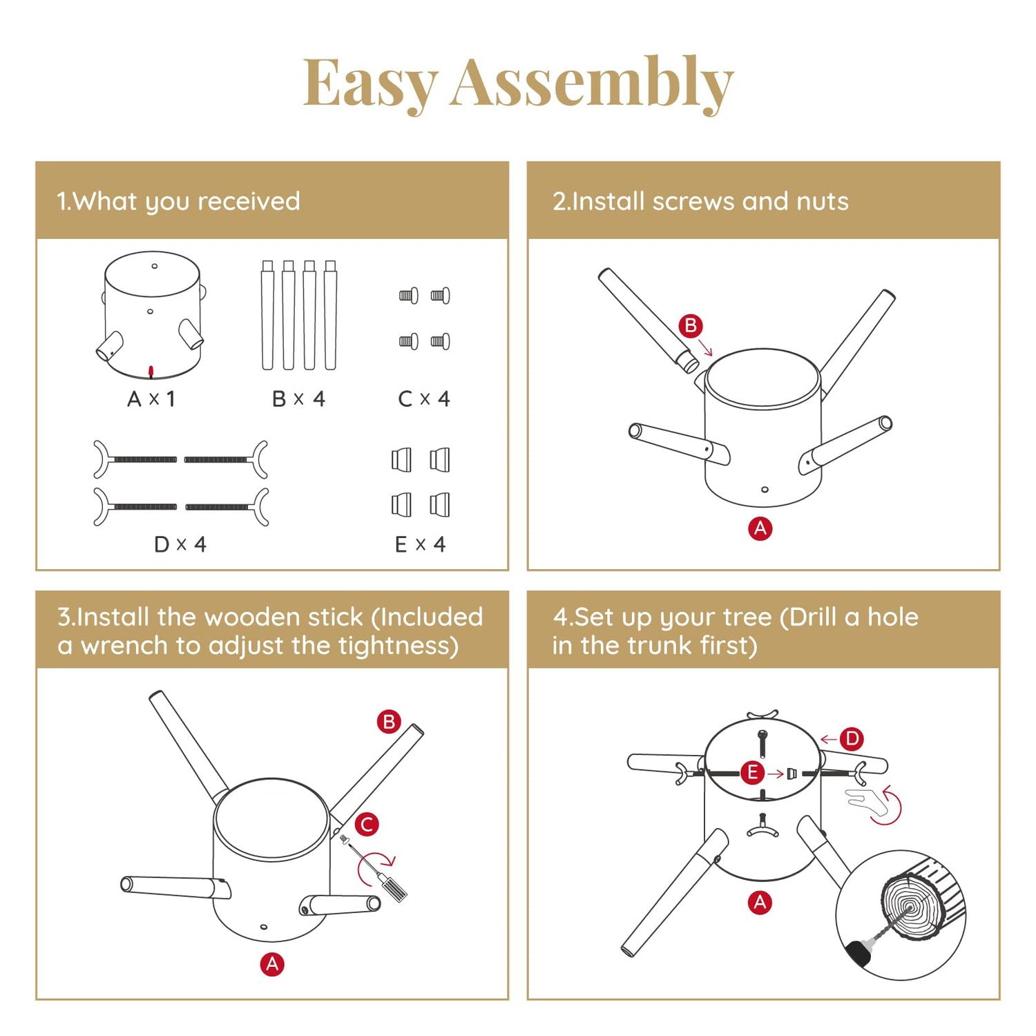 - 【Stable & Easy Assembly】Strong legs made from sustainable beech hardwood, this ensures the live Christmas tree to stand straight. Ergonomic design using the smartest bolts and nuts to help you putting up your Christmas tree and easy