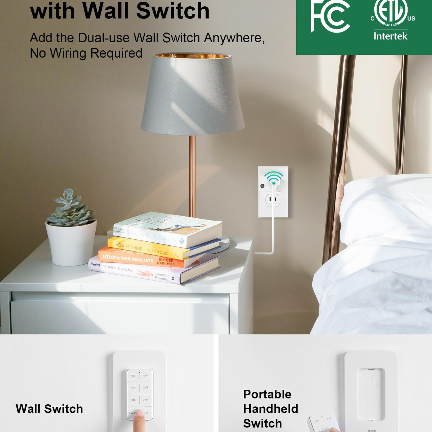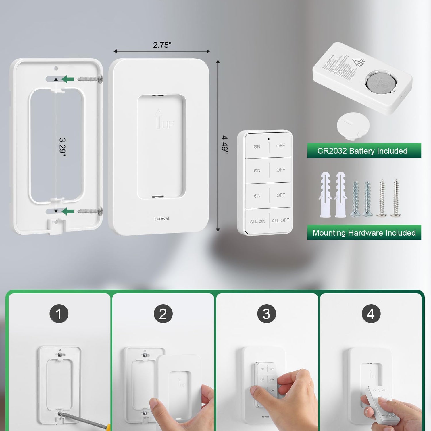 TREEWELL Remote Control Outlet Wireless Wall Mounted Light Switch, Programmable and Expandable Remote Light Switch Kit, No Wiring Needed, 200 Ft RF Range, 15A/1875W, Compact Design, ETL Listed