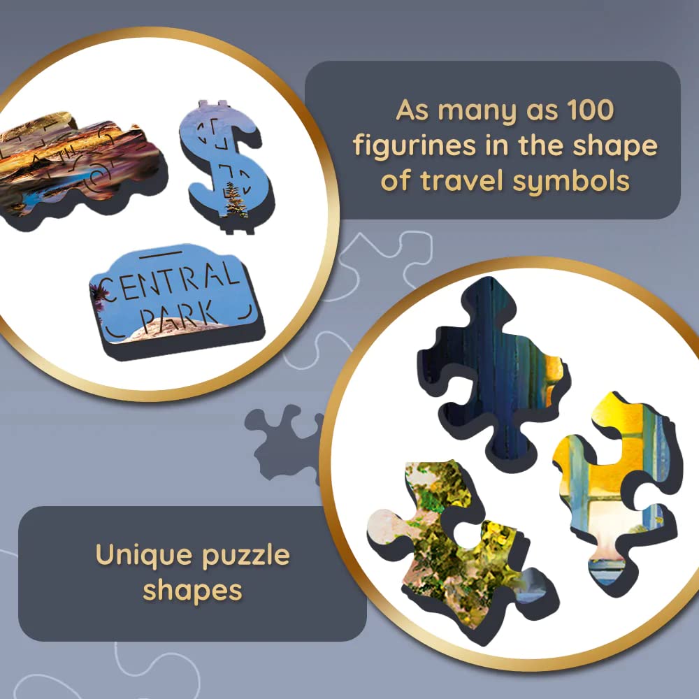 - As many as 100 unique puzzle figures that depict symbols that only a true fan of travelling and the USA will be able to find. Decorative pattern on the reverse side will be appreciated by every puzzle lover
