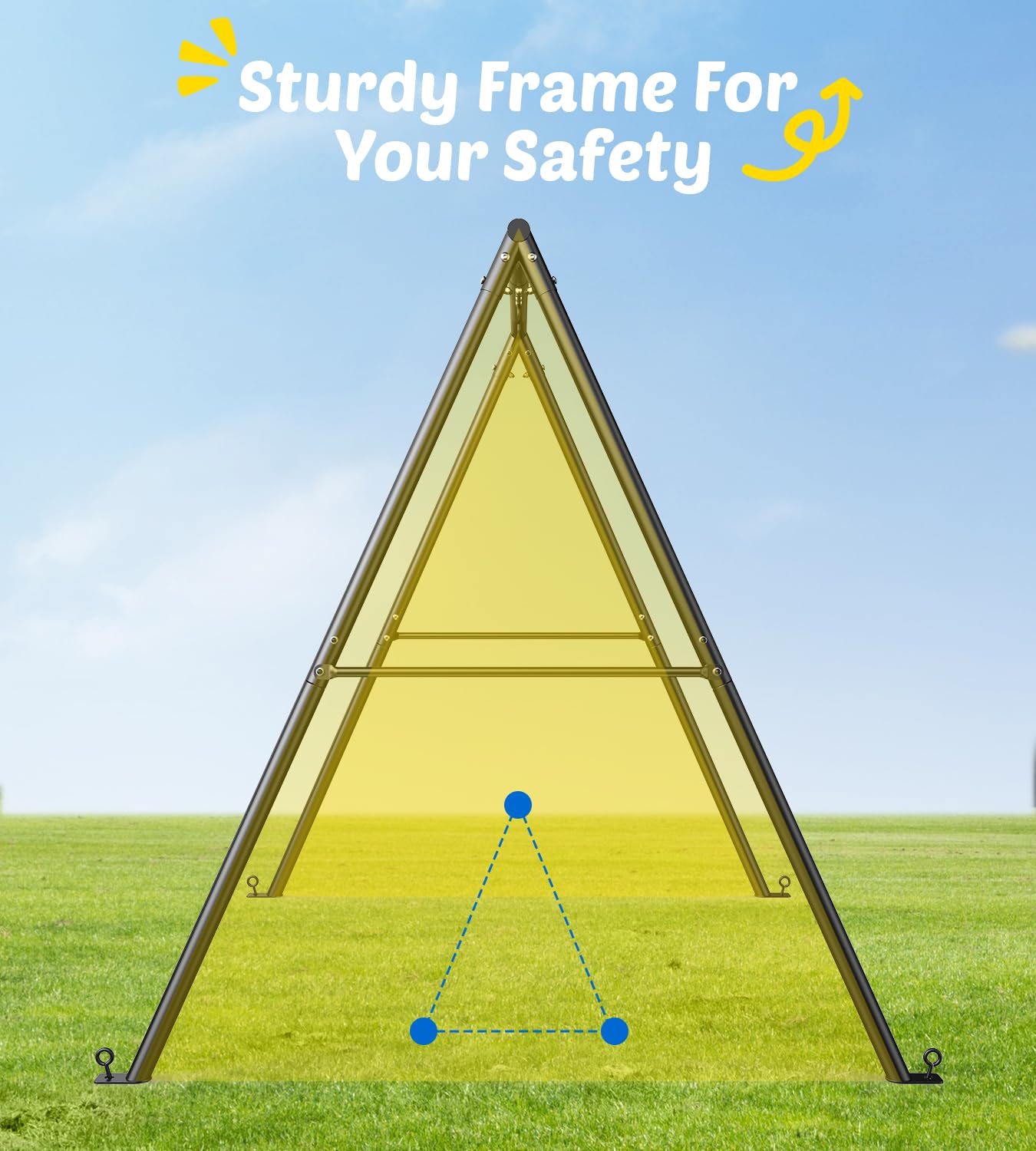 - Great for outdoor play: Our A frame swing set is a perfect outdoor play equipment for kids to burn energy in your backyard, playground, playsets, yards without taking up much space. Backyard swing with stand suitable for adults, kids, indoor, outside fun