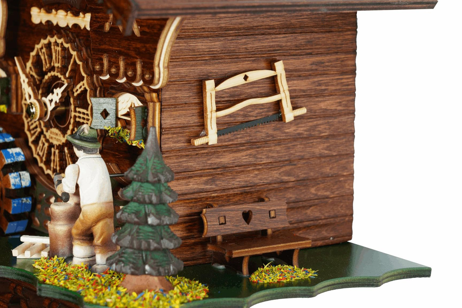 Trenkle Quartz Cuckoo Clock Black Forest House with Moving Wood Chopper and Mill Wheel, with Music TU 4217 QM