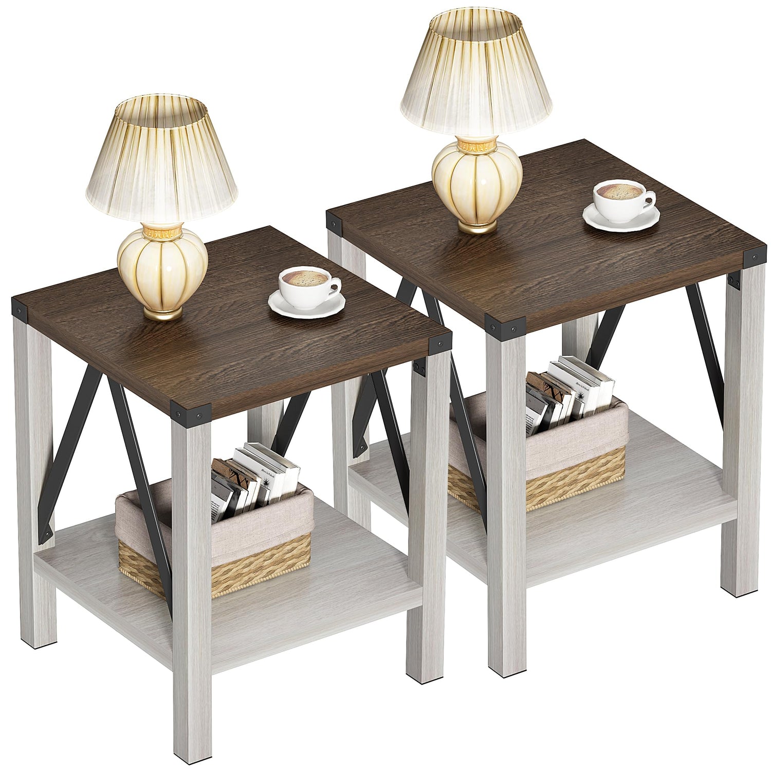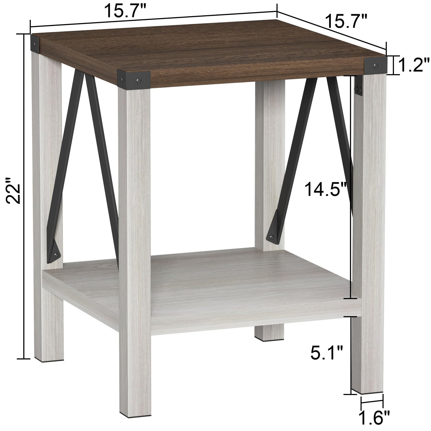 - 【Farmhouse Feel】Featuring a two-tone mix of antique white and cool brown, this industrial end table takes a cue from farmhouse style to create a cozy, swoon-worthy feel in your living space