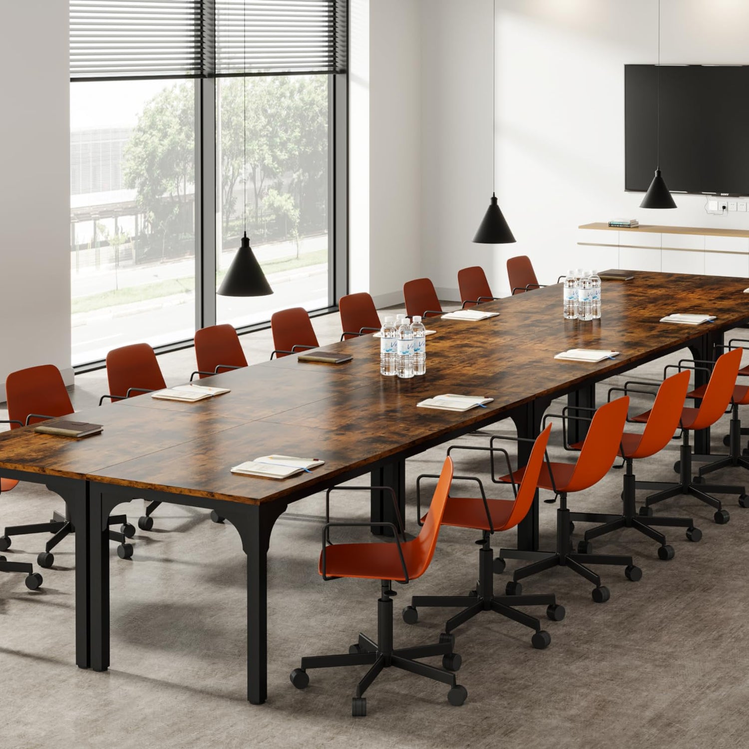 Trggivs 13FT Conference Table, Super Sturdy Large Rectangle Meeting Seminar Table for 12-16 Person, Long Business Tables, 4 Pcs Brown