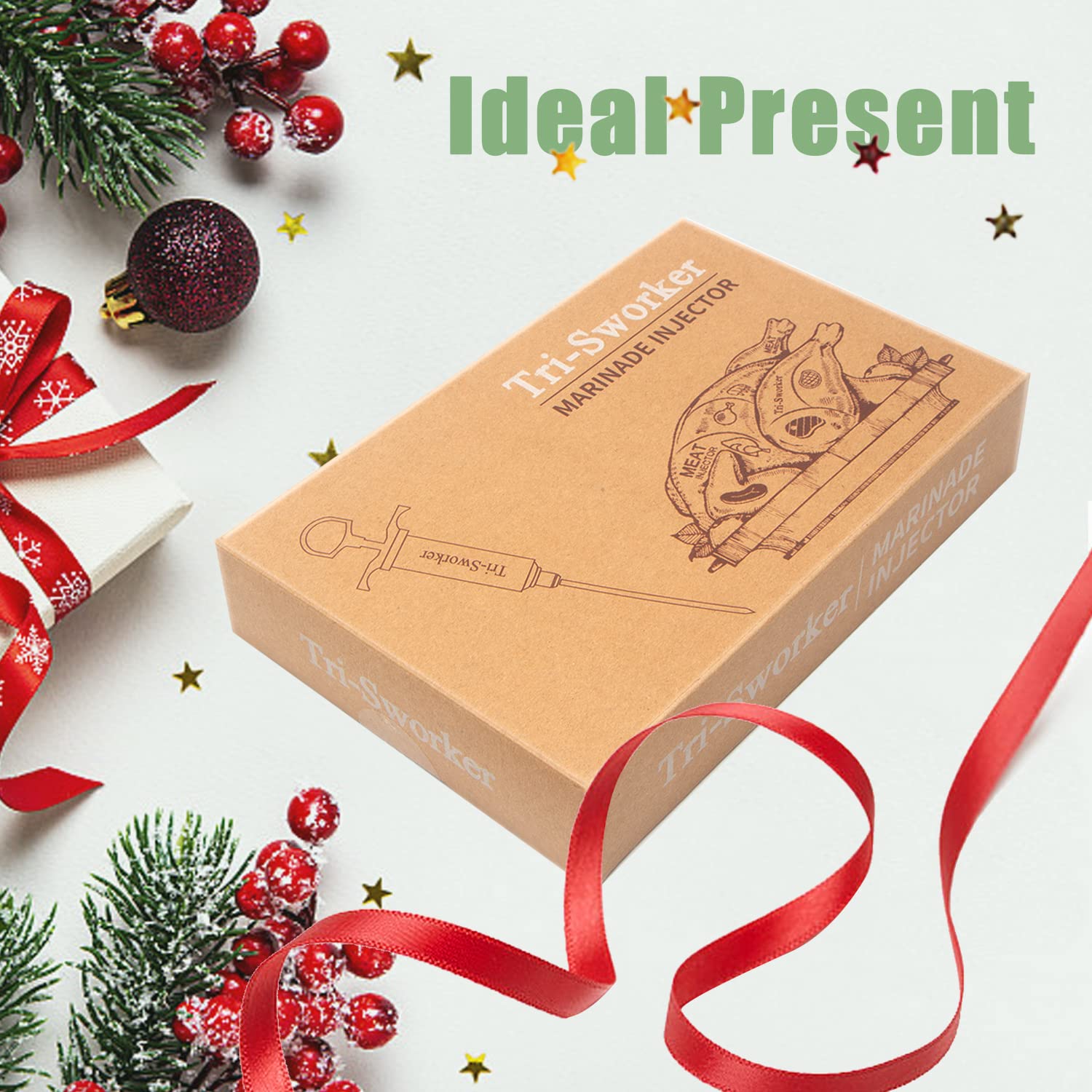 Tri-Sworker Meat Injector Syringe for Smoking with 4 Marinade Flavor Food Injector Needles, Ideal to Injector Marinades for Meats, Turkey, Brisket, Beef; 2-OZ Capacity