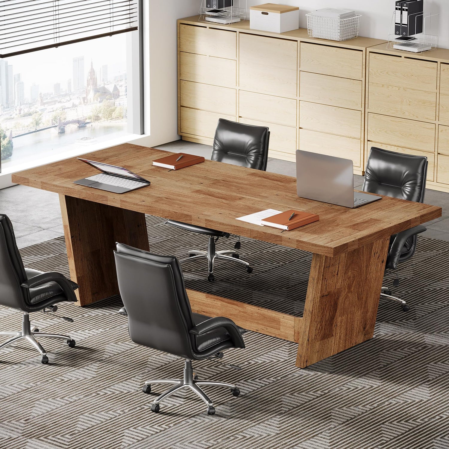 Tribesigns 12FT Conference Table, 70.87" W x 31.5" D Rectangular Seminar Table Set for Meeting Room, Solid Executive Business Furniture Boardroom Desk for Office, Light Brown
