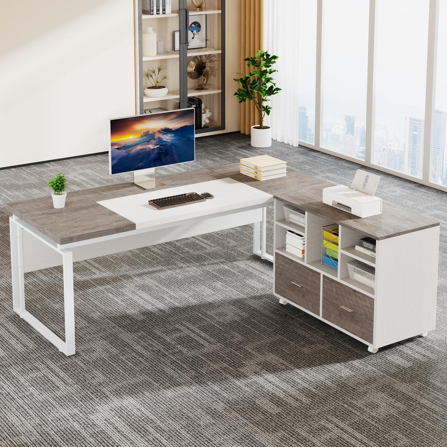 - 【Ample Storage Space】 This 39.4-inch file cabinet set offers excellent storage options to keep your office well-organized. It comes with 2 drawers, perfect for hanging letter-sized files, and 5 open shelves to display your essentials or decorations.