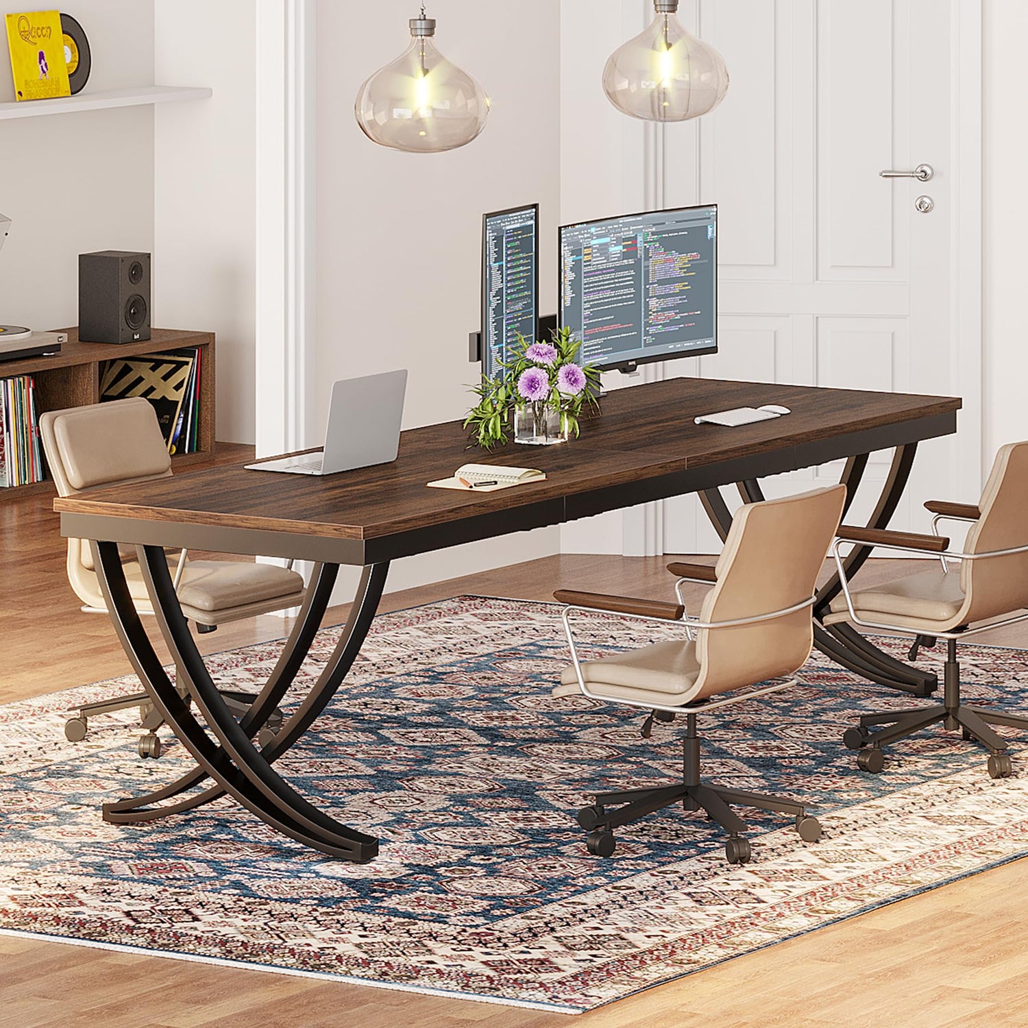 Tribesigns 2-Person Office Computer Desk, 78.7-Inch Extra Long Desk, Large Double Desk for Home Office, Workstation Work Desk for Two People with Stylish Legs, Rustic Brown