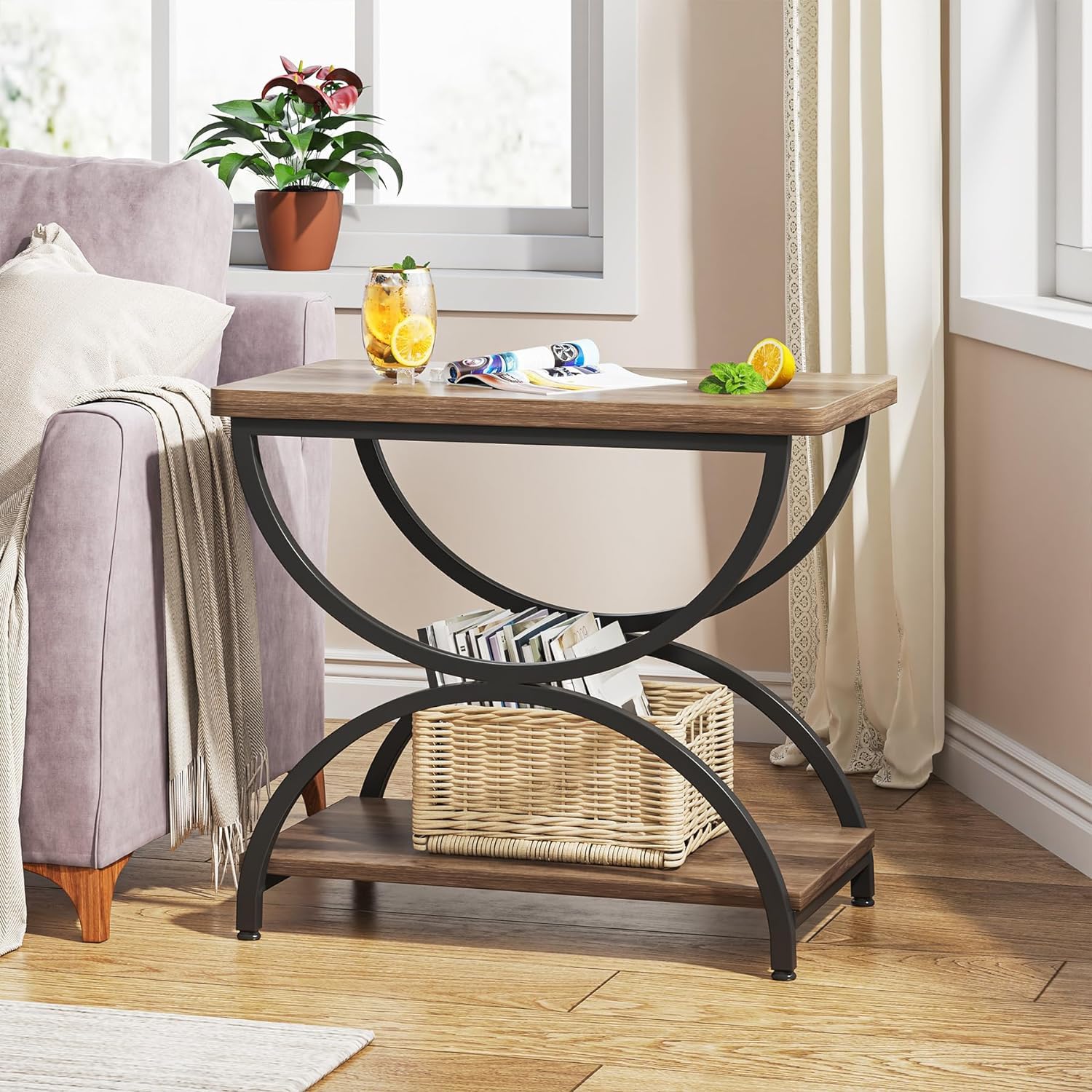 - 【Ample Storage Space】-With its two-tier design, this wood end table offers plenty of space to display your favorite items, hold a lamp, or keep essentials within easy reach.
